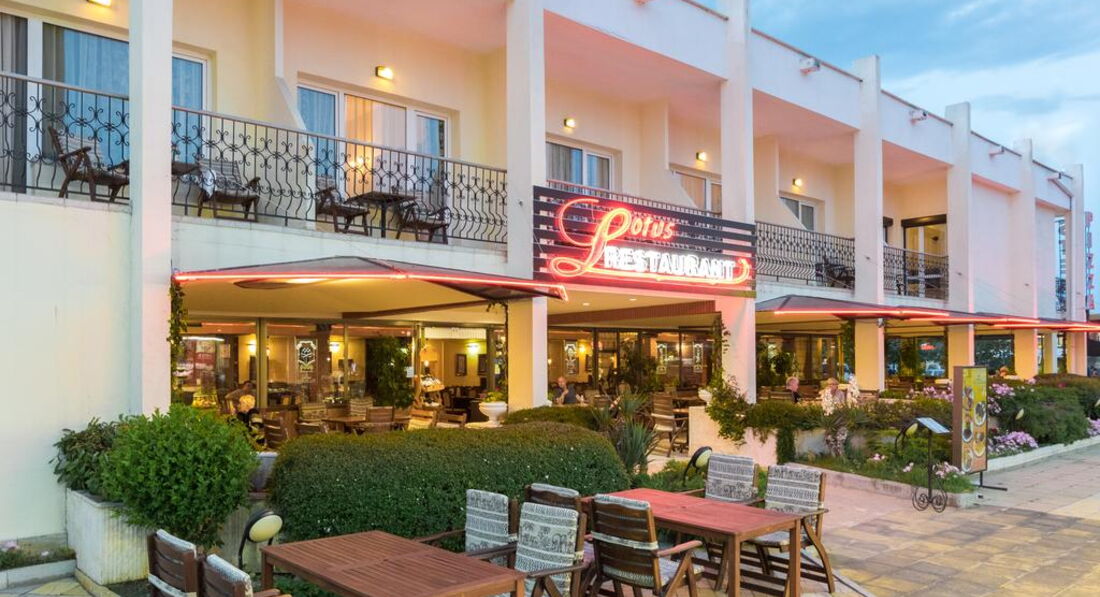 Lotus невеликий затишний готель розташований за кілька хвилин ходьби від пляжу, відомий курорт Сонячний берег. Готель підходить для сімейного відпочинку та самостійних мандрівників.