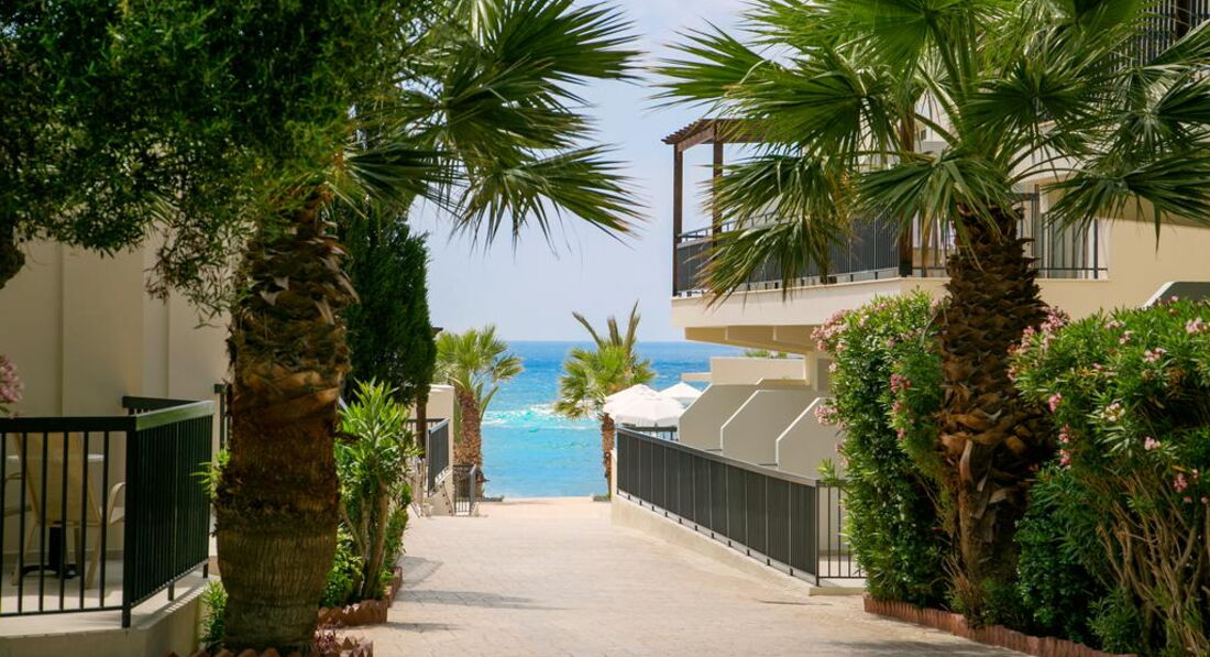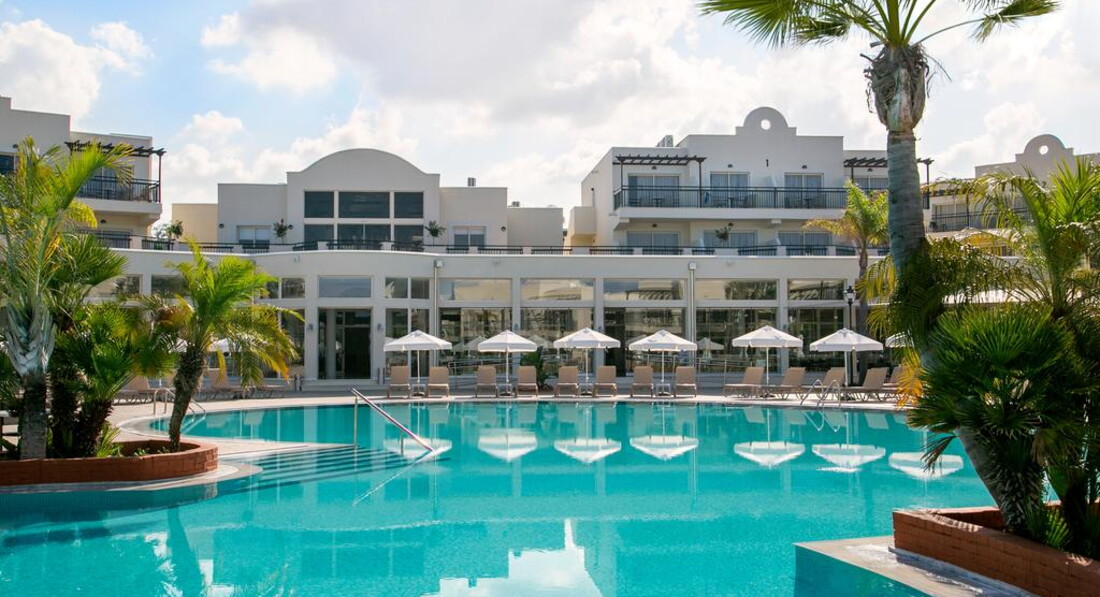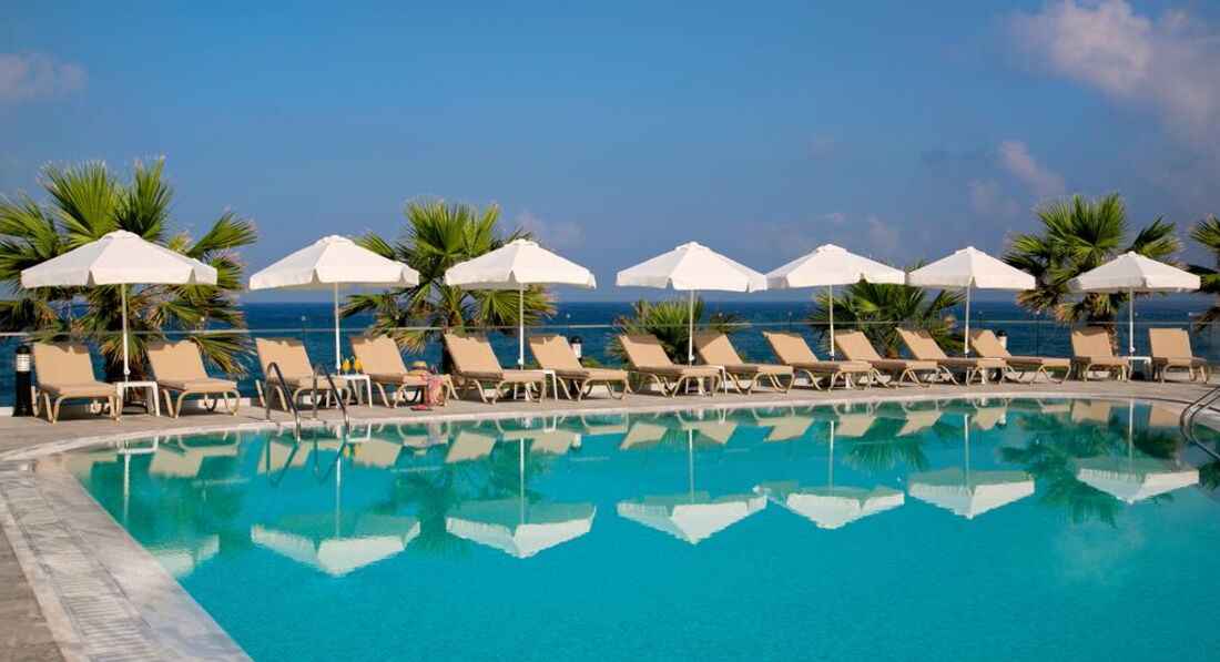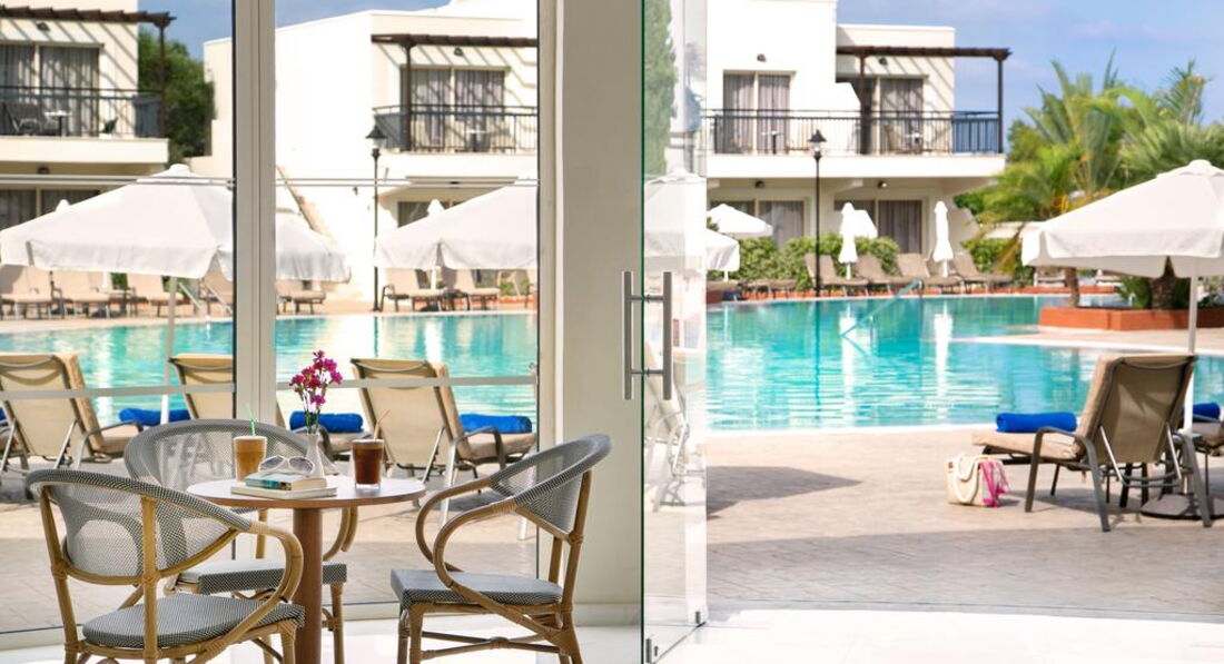 Розташування: Готель розташований на березі моря в районі Хлоракі, в 21 км від аеропорту Пафос, в 10 км від центру Пафос, в 13 км Старого міста, в 500 м від автобусної зупинки.