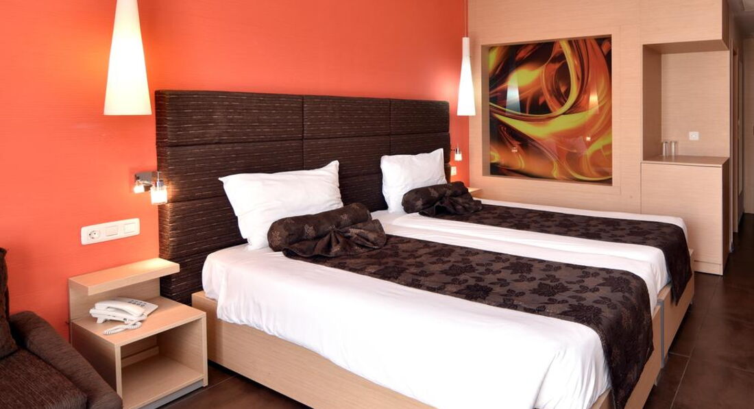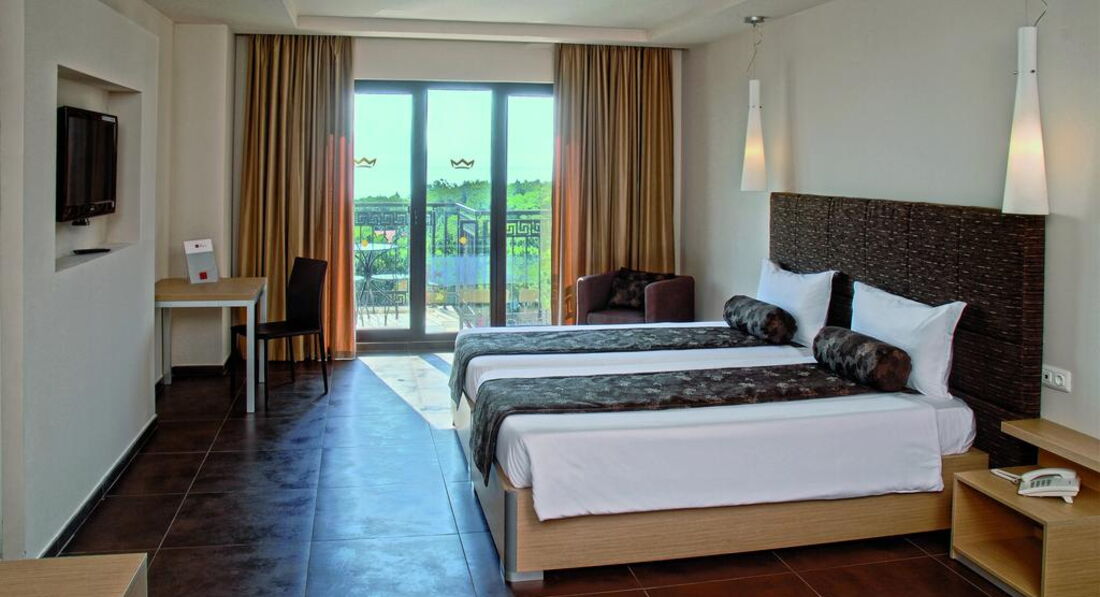 Номер выходил с видом на море попросили заранее у тур оператора доплата небольшая, вид с балкона открывался прекрасный, номер просторный, ванная комната большая с душевой кабиной и ванной, территория отеля большая с бассейнами, можно посидеть в кафе или на лавочках, в отличие от других отелей у которых территории нет вообще, у нас она была просто шикарная, проводились детские дискотеки на которые моя малышка ходила с удовольствием, взрослые анимации каждый день, кармили на убой были и рыба и мясо видов 3 разного приготовления, выбор еды очень разнообразный, для ребёнка можно подобрать любое блюдо! Помимо основного ресторана были и дополнительные перекусочные бары, можно было заказать любой напиток спитрной (хорощего качества) и не спиртной (соки, кактейли, кофе, чай)! Море находится в 10 минутах ходьбы от отеля, народу на пляже много, но место найти всегда можно, мы лежали возле моря, т.к. это удобно ребёнку, вода прозрачная, даже проплывали маленькие рыбёшки! Вообщем рекомендую этот отель всем и сама туда ещё обязательно приеду!!!)))))Всем прекрасного отдыха!