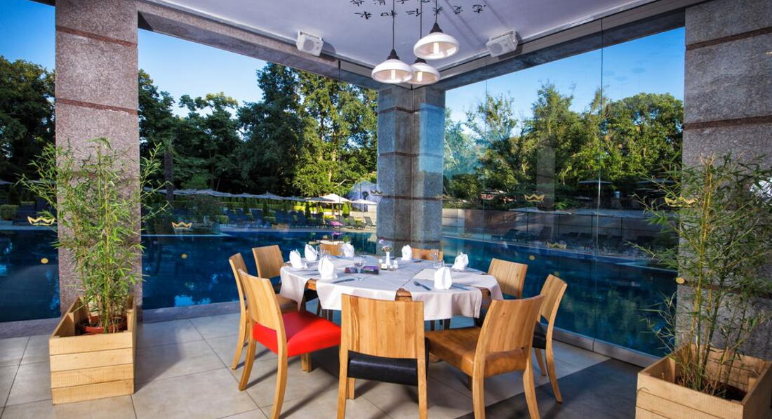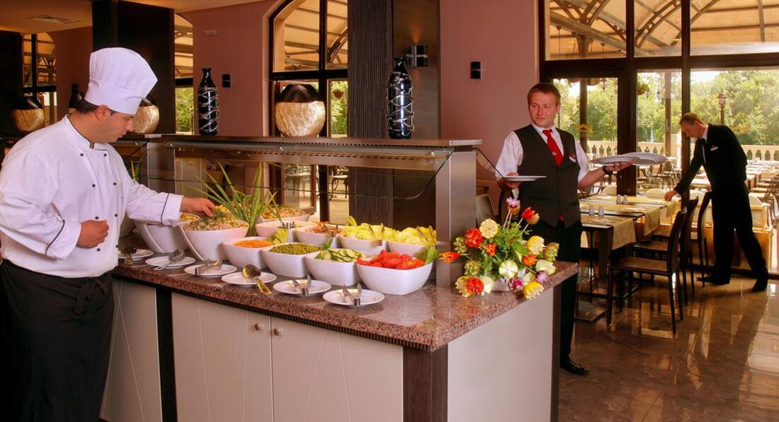 • ресторани: 3 (основний на 250 чол., з терасою; 2 ресторани шведський стіл: азіатський та болгарський, по 1 разу за час перебування безкоштовно, по резервації)
