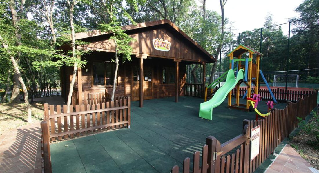 Детская площадка очень маленькая одна горка, одни качели, но аниматоры придумывают каждый день различный темы для игры так что дети заняты, хотя на такой большой территории можно и городок игровой разместить
