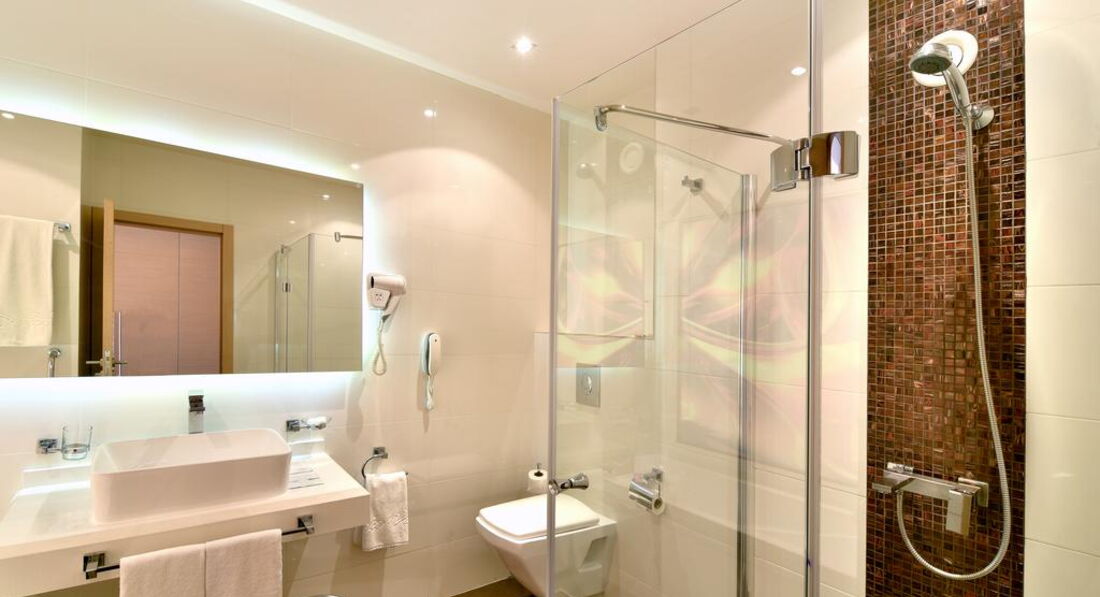 Туалетная комната небольшого размера, с душем. Ванны нет. Зеркало, фен, маленькие мыла, 2 рулона туалетной бумаги. Вроде шампуни, но я не особо рассматривал, мужиков это редко интересует :) Телефон на стене в туалете порадовал.