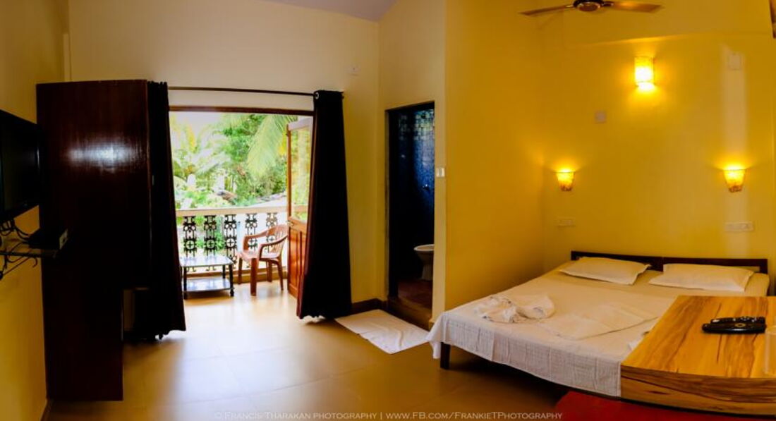 Мы отдыхали с 3.12 по 17.12.14 с мужем. Искали что-нибудь бюджетное, поэтому сильно не заморачивались по поводу проживания. Всё таки знали куда едем). Если нужен "Оллинклюзив", то езжайте в Египет или Турцию! Индия это экзотика во всей своей красе! Понравилось всё! Огромное спасибо всему персоналу! Заселили сразу в главный корпус, на второй этаж, прям над входом. Балкон большой, по сравнению с балконами на стороне бассейна. Первое впечатление было приятное, единственное что смутило, это муравьи в панике бежавшие по тумбе перед зеркалом. Их я видела только пару раз, видимо место дислокации сменили, только заблудшие иногда попадались и то не часто. Номер просторный. Есть кондер (пульт к нему не нужен) он включался на главном щитке у двери, мы его включали только когда уходили куда-то надолго. Две кровати смещены - но нам было в принципе все равно, в обнимку мы помещались на одной. Вентилятор его хватало вполне. Телевизор. Wi-Fi доступ я так понимаю был только рядом с ресепшином, т.к. большое количество людей заседало там) Но нам опять же повезло! Номер был над ресепшином). Завтрак вкусный. Официанты всегда приветливы. Никто в номер не ломился. По просьбе сменили постельное, и убрали в комнате. Мусор сами выносили к лестнице на втором этаже. Посуду брали внизу в баре, т.к. двух пластиковых стаканчиков маловато). Холодильник маленький, но зато есть). В общем отличный отдых получился. По окончанию не хотелось уезжать(