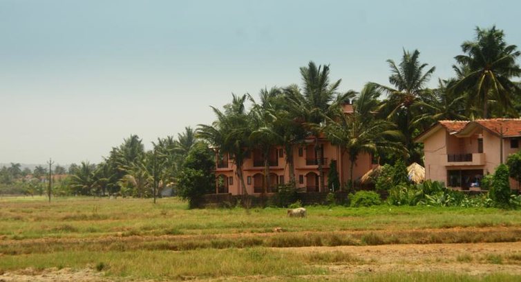 Отель расположен замечательно, чуть в стороне от дороги, рядом с полем, поэтому звуки незасыпающей Индии было не слышно, на территории и в отеле было спокойно и тихо. До моря есть несколько дорог, самая короткая –выйти из отеля на дорогу, свернуть чуть влево и сразу направо по дороге вверх. Так идти минут 5-7, мимо местных жилищ и отелей, очень колоритно и здорово.