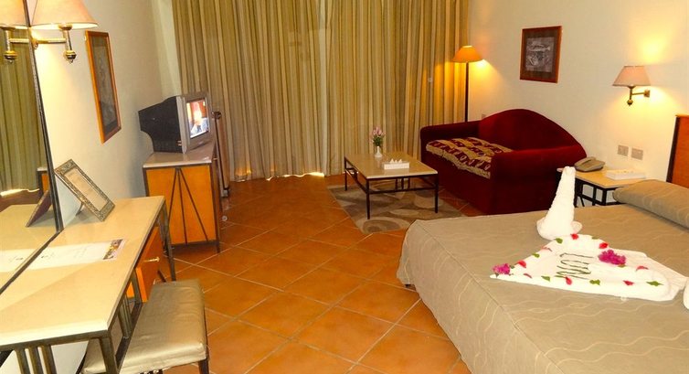 В отель потрапили випадково, треба було переночувати, гід привіз в Луна Шарм. Поки їхали почала гуглити, куди ж ми їдемо. Але, повірте, коментарі не відображають повної картини. Потрапили ми в отель близько 11 вечора, заселили нас швидко, на ресепшені особливо не роздивлялися по сторонах. Зайшли в номер. Все старе, на стінах подулася штукатурка, сантехніка жахлива, рушниками страшно витиратися. Попросили води, нам принесли в пляшці з-під коли. Ми почали пояснювати, що нам пити. Персонал російської майже не розуміє. З горем пополам нам через хвилин 10 принесли пляшку води і сказали "ван долар". Мабуть збігали в магазин купили. Зранку при світлі дня ми злякалися ще більше. Готель мертвий. Крім нас було ще два туристи, басейни спущені і їх не чистили вже дуже давно. Колись, мабуть, там було не погано, але зараз все не прибране і не жиле. Сніданок. Коли ми прийшли в їдальню хлопець побіг готувати. Винесли нам яєшню (на порцію, мабуть, одне яйце), по два шматочки двох видів не їстівних сирів, по кілька шматочків огірка і помідора. Пропонували чай-каву, але пам'ятаючи, що в готелі нема питної води, ми відмовилися. Все було свіже. Не можу поставити оцінку за харчування, оскільки крім одного яйця і овочів нічого більше не їли. До обіду ми не залишалися. Якщо коротко, то в цьому отелі зараз просто нема умов для відпочинку, навіть для невибагливий туристів. Краще вже на Чорне море