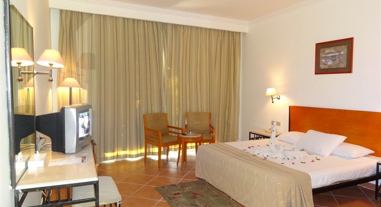 В период нашего пребывания, в отеле было 8 человек, поэтому номеров было предостаточно. Нас поселили в 112 номер на 1 этаже, вид был на бассейн. С нашим номером было все в порядке, да, не мешало бы сделать ремонт, но для нас это все не критично было. В номере была 2-х спальная кровать, две тумбочки, трюмо с зеркалом, телевизор(с российским каналом, который через пару дней отключили), холодильник, большой шкаф. В санузле, все, как обычно, но душ слегка уже "постарел", но горячая и холодная вода была круглосуточно.
