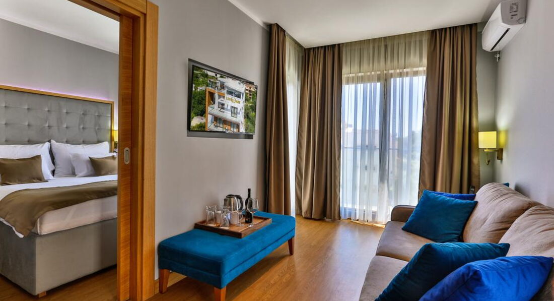 Готель Lusso Mare розташований у місті Бечічі, за 3,5 км від пляжу Могрен і за 4,4 км від аквапарку Будви. Семиповерховий готель, збудований в елегантному стилі, відкрився навесні 2019 року. У пішій доступності знаходяться магазини, кафе та автобусна зупинка.