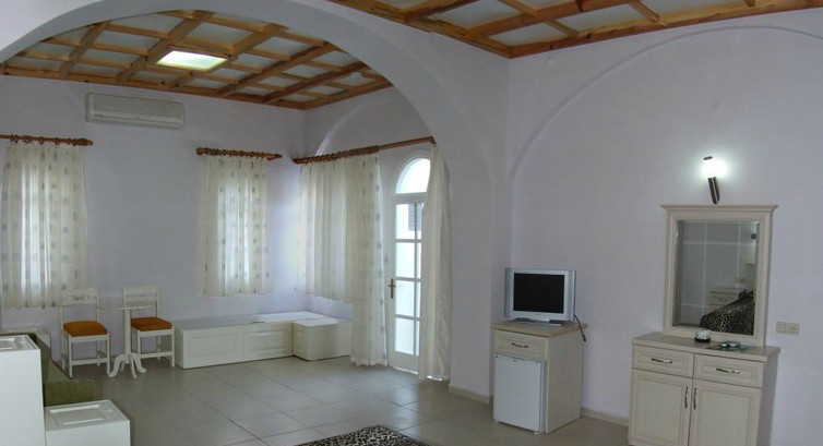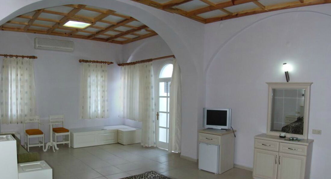 Приехали в отель в 7 часов утра, заполнили на ресепшн карточку, после чего нам предложили пройти на завтрак. Несмотря на то, что приехали мы первыми, вначале стали заселять туристов из Европы и турок. Ближе к обеду и нас привезли в номер, который почему-то оказался за пределами отеля, метрах в 100-120. Там стоят 5 отдельных двухэтажных домиков, номера в которых начинаются с цифр 37. Нам достался номер на втором этаже. Внутреннее убранство номера вообще не соответствует тому что размещено на веб-сайте, возможно он и был современным и комфортабельным в 80-х годах прошлого столетия. Чего я никак не ожидал увидеть, так это маленький телевизор, но не LCD, а тоже из 80-х годов прошлого столетия – с кинескопом, с диагональю дюймов примерно 12-14. С трепетным волнением включаю данный раритет и, о чудо, он оказался не чёрно-белым, а цветным. Правда в номере были два хороших балкона, пластиковые двери на которых приходилось закрывать при помощи трёх конечностей: одной рукой браться за дверную ручку, второй рукой прижимать дверь вверху, а ногой прижимать дверь снизу. А ещё порадовал ключ от номера, он был обычным металлическим ключом, и в единственном экземпляре, и на протяжении всех 10 дней мы вчетвером передовали его друг другу как эстафетную палочку.