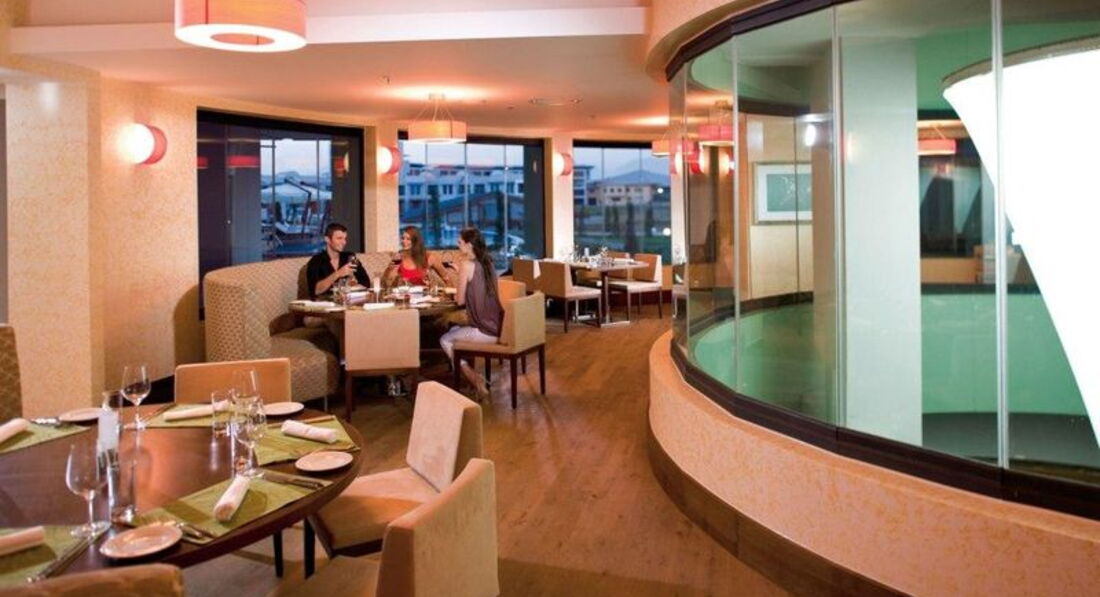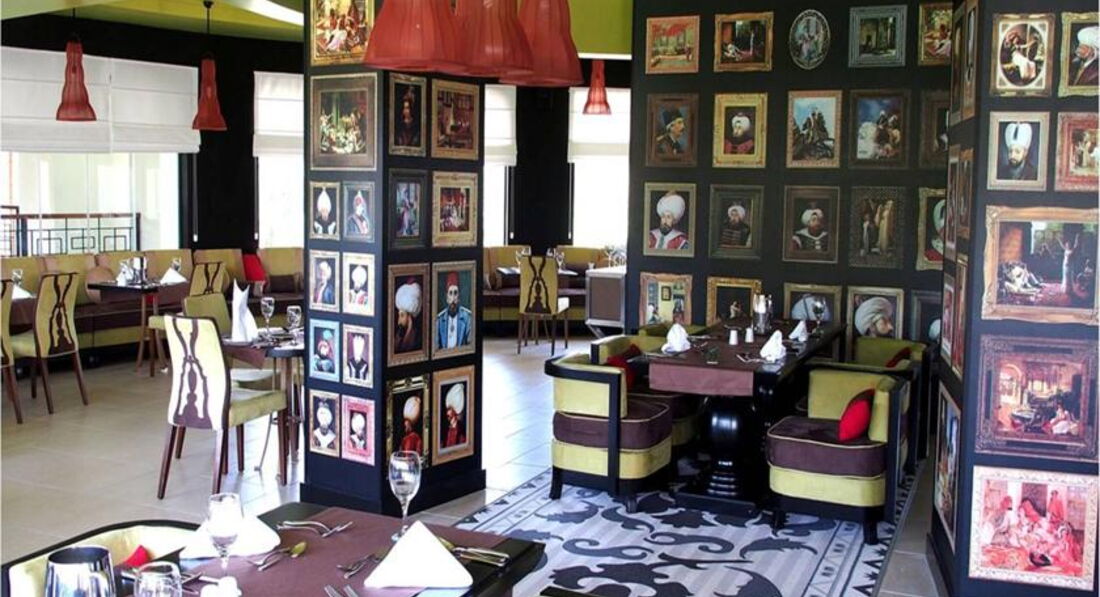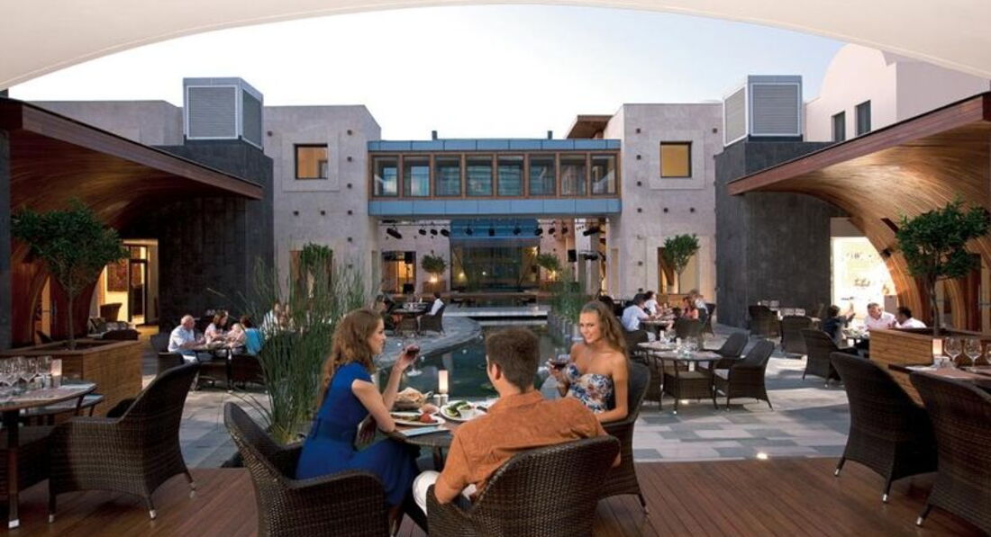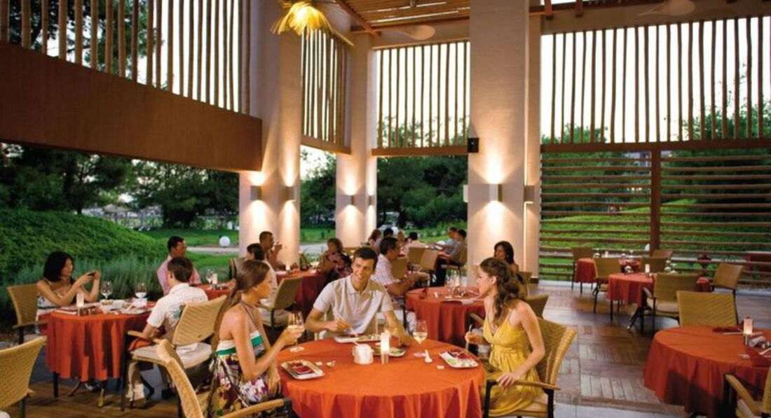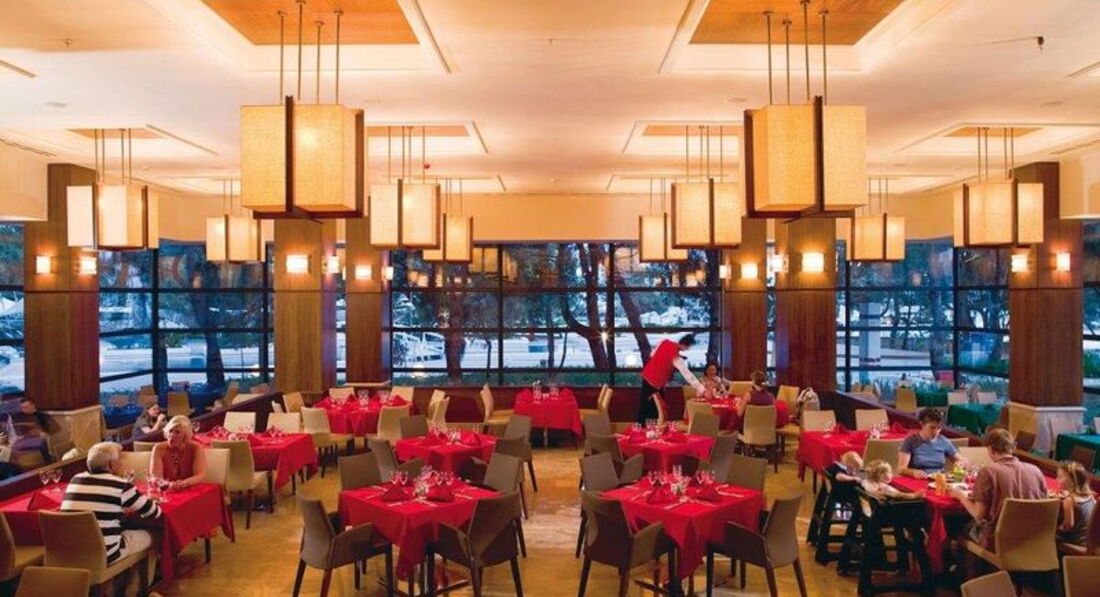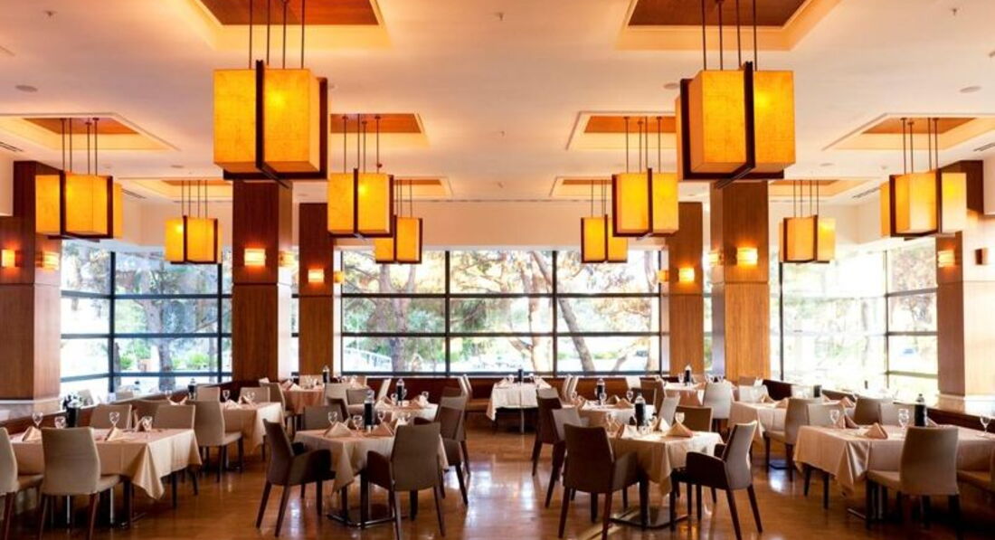 Бари та ресторани: головний ресторан розрахований на 1000 осіб (критий, з кондиціонером, літня тераса, дитяче меню, дієтичне меню, дитячі стільці), лобі-бар (24 години), бар біля басейну (10:00-18:00), бар на пляжі (10:00-18:00), диско-бар (21:00-01:00) та ін. 5 ресторанів A la Carte: турецький, італійський, рибний, сінгапурський, стейк-хаус - платно, за попередньою резервації.