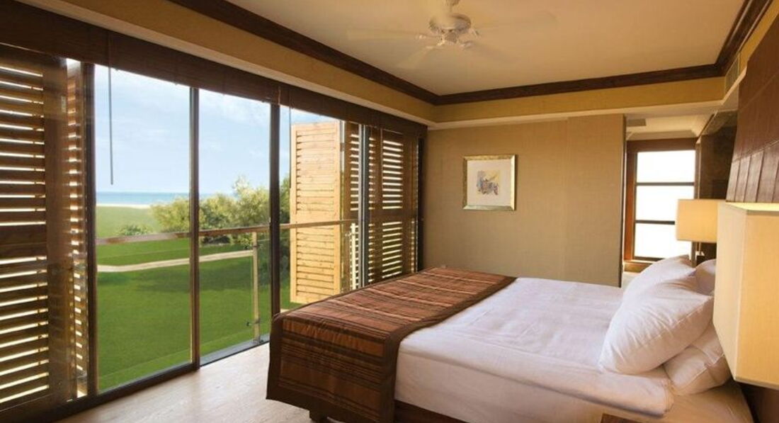 В Турции были много раз, всегда 5* , есть с чем сравнить, отелем и отдыхом остались довольны. Хорошая ухоженная территория, есть где погулять, красивые гольф поля. Большие и красивые номера стандарт, очень удобно для троих в номере, балкон, панорамное остекление. Приятный персонал в ресторане и барах(за счёт молодежи из Киргизии ) доброжелательный и внимательный. Пляж замечательный для прогулок, пробежек и любителей уединения, можно уйти на 1-2 км от отеля, вокруг никого, отель находится в стороне от населенных пунктов. Хорошее питание, для ультра маловато фруктов( только яблоки и апельсины, грейпфруты) , мороженое давали только на ужин и рестораны а ля карт платные даже по записи. Большая площадь ресторана думаю позволит обойтись без очередей за едой и свободными столами, в мае конечно все было комфортно. Баров много, есть где посидеть отдохнуть , выпить кофе, коктейль , понравился бар рядом с пляжем. Вечером приезжали танцевальная и музыкальная группы, организовали пенную вечеринку. Вай фай сказали только в лобби , но иногда брал и в номере и у бассейна. Купались каждый день, море бодрит и освежает. В общем отдых вспоминаю с удовольствием, чего и вам желаю.