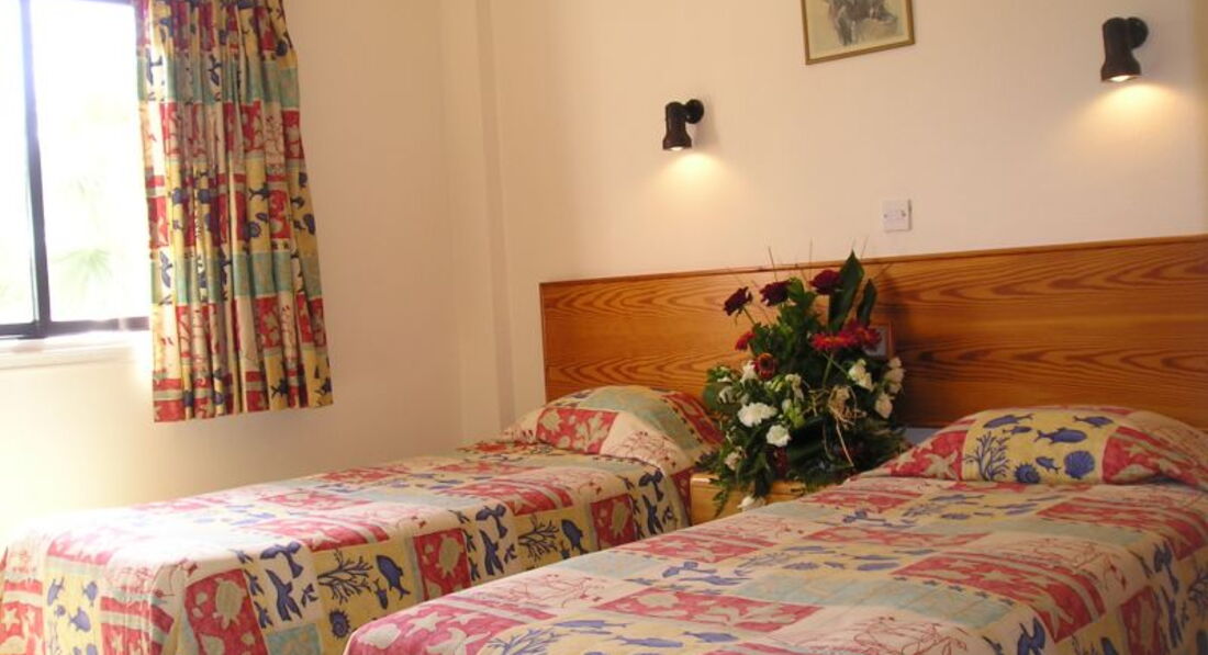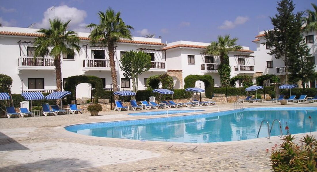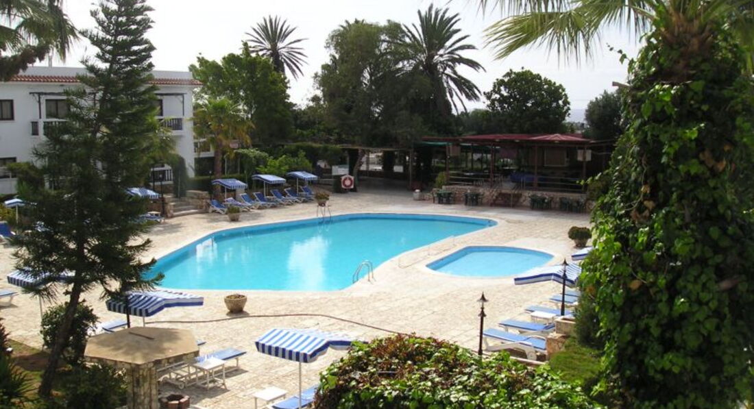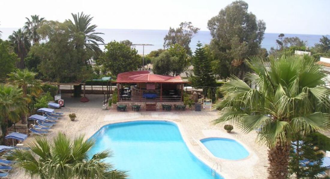 Отель небольшой, расположен рядом с морем, номера старые, мебель ужасная, куча непонятный табуреток и шкафов без полок :) зато большие и удобные постели, ни одного крючка, чтобы повесить полотенца или одежду. Удивило отсутствие телевизора. Кондиционер - 5 евро в сутки, если у вас 2 комнаты, то дополнительный кондиционер -2,5 евро в сутки, сейф - 2 евро в сутки, стирка в допотопном агрегате в автоматическом режиме (всего 30 минут) - 3 евро. Уборка чисто символическая, пыль и грязь под постелями и по углам игнорировалась, периодически сами мыли пол и убирались...если не следить за едой и тщательно не убирать столы и не следить за чистотой пола, то из всех щелей ползут муравьи, которые едят все подряд :) тараканы и другая живность. Белье меняют 2 раза в неделю, простыни очень тонкие светло-серые, полотенца бывают вполне ничего, иногда попадаются с пятнами. Вода нагревается солнечными батареями, так что если погода не оч, то и вода в кране бодренькая, но так по всему Кипру. На территории много кошек, которые спокойно ложатся на ваши полотенца на лежаках, что очень неприятно, так как по некоторым прыгают блохи, наблюдаются проплешины... Есть бассейн метров 20, в принципе, его чистят каждое утро, так что он более или менее чистый. Неприятно, что за дополнительную плату в бассейн пускают всех желающих, а таких желающих бывает набирается, ну, очень много, причем это местные, которые собираются компаниями по 15-20 человек, орут, бесятся, прыгая в бассейн делая кувырки и разнообразные кульбиты, в общем, веселятся на полную катушку. Пляж через оживленную дорогу, правда, есть светофор и переход, так что нормально. Лежаки платные, один лежак - 2,5 евро. Песок своеобразный...какой-то глинистый, плотный, но все равно детишкам хорошо. Пляж грязноватый, валяются всякие огрызки, окурки, фантики. Детская площадка, наверное, сохранилась с прошлого века :) Море очень классное, прозрачное и чистое, мелко метров 20 точно, детишкам очень хорошо, правда оно еще и очень соленое, так что когда вода попадает в глаза, ну, очень жжет, взрослому еще ничего, а мой ребенок орал и тер глаза, при том, что он очень любит плавать. В середине мая-середине июня (4 недели отдыха (дул жуткий шквалистый ветер до 15 м/с, который не давал посидеть на пляже, это оказалось самым неприятным сюрпризом, так как нигде в отзывах не натыкалась про упоминания о сильном ветре. Да, на пляж пару раз в неделю привозят на 3 огромных автобусах местных детей разного возраста...которые орут и скачут по лежакам, лопают шарики, в общем, веселятся, как все дети, однако во время отдыха не хочется видеть вокруг себя столько орущих детей и подростков, причем они маются бездельем часа 3-4...примерно с 9 до часу дня. Рядом с отелем всего 1 магазин, на автобусе можно доехать до крупных супермаркетов, овощной базы, МакДональдса и т.п. Выселение из номера в 12, в правилах написано, что можно доплатить 20 евро и остаться до 6 вечера, нам почему-то не разрешили, хотя были свободные номера, эту ситуацию я не поняла...разрешили остаться до часу дня, пришли в 12, все продукты выкинули, воду из пластиковых бутылок вылили, сок и другие продукты все в мусорном ведре...это оставило неприятный осадок. В принципе, все отлично, отдохнули хорошо, основной минус - это очень, очень, очень сильный ветер, который просто достал!