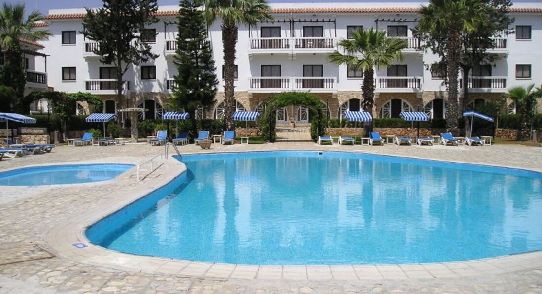 Сам отель маленький, территория тоже, но очень ухоженная. По центру есть 2 бассейна с подсветкой, детский и взрослый, вода в них очень теплая, можно купаться даже ночью. Понравилось, что тихо, никто не шумит, не кому, там практически все с маленькими детьми. Анимации нет вообще никакой и даже намека на нее, тем, кто там останавливается она и не нужна особо. Но если хочется потанцевать, можно прокатиться до Айя-напы, это самое тусовочное место. Или просто выбраться в центр города. Но вся эта тишина нарушается в воскресение, т.к. у местного населения всеобщий мертвый день - выходной. Они целыми семьями на авто (автобусы по воскр. не ходят вообще никакие) едут на пляж, а так как для них большая редкость бассейн, чем море, есть специальные тарифы на проход на территорию отеля, где местные занимают все лежаки, столики и сам бассейн на весь день!