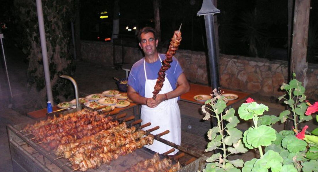 Где поесть. От отеля направо минут 5-10 ходьбы ресторанчики с русским меню, там говорят по русски, самое дорогое блюдо - мезе мясное и рыбное 15-23 евро, на 1го готовить не соглашаются обычно, мы уговорили, вдвоем не осилили 1ну порцию, остатки нам завернули с собой. Попробовать стоит точно)) Блюдо в среднем 8-13 евро, порции большие, вино бокал 3-4 евро. Тут можно попробовать местную кухню.