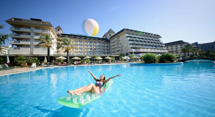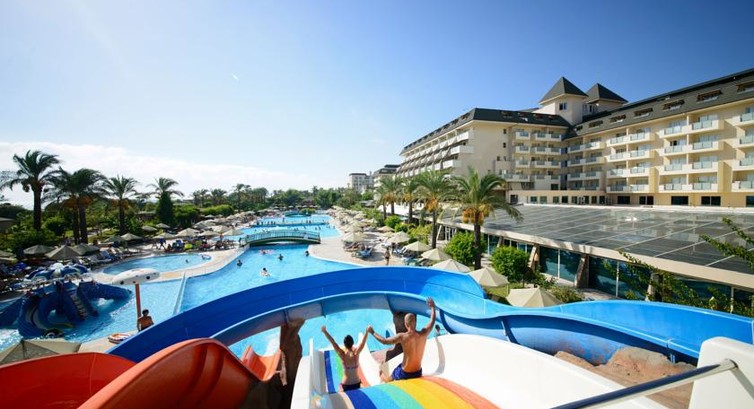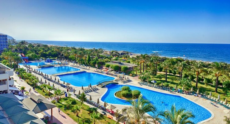 Начну с хорошего: пакет брали через частного агента у туроператора Tez Tour. Взяв во внимание цены чуть выше средних у них, поездка за 2 недели до вылета стоила 103000 руб. (1700$) за двоих взрослых и одного ребёнка. Летели авиакомпание1 Ямал, вылет и прилет без задержек. Далее трансфер: спасибо тез туру! Маленький автобус, который за 1 час 10 минут довез нас до места, плюсы на этом закончились. Приехали в отель в 09:30 утра, зарегистрировались и пытались договориться о заселении раньше, сначала так, потом предложили деньги: отказ. От ресепшена если идти есть туалет и бар, так вот между баром и ресепшеном была такая вонь, как будто там рота солдат нарыгала, но когда это не выветрилось на 6 день, понял, что там всегда такой запах. Заселились в 14:00, дали номер с убогим видом на парковку сестре дали номер рядом, третий попутчик за 20$ получил номер с видом на море, пошли тоже договариваться, объявили цену в 50$, мы отказались. Обосновались, вроде ничего. Но зря мы так думали) уборка только днем, когда мы с ребёнком спали, в другое время они не убираются, еле еле договорились с уборщица за 1$, чтобы убралась до обеда, так как она ни разу по-русски не понимает, еды много, но все однотипное. Из алкоголя только пиво, вино, джин и водка, все местного разлива, пиво и джин хорошие, вино пить можно, водка убогая. В общем и целом по питанию: это не ультра all inclusive,. а просто all инклюсив. На территории отеля за лепешками очередь гигантская. Хорошее место для еды в двухэтажном кафе на улице, из плюсов могу отметить, что можно сходить поесть в соседний отель (это одна сетка). Из плюсов для детей это аквапарк, который работает по времени, анимация для детей 3- (была дискотека в амфитеатре, но очень громко все), анимация для взрослых 1 (20 минут каких то соревнований в день). Дети ходили за молочным коктейлями (детей было 4), но им отказывали, мол молока нет, после нашей ругани с барменами, все волшебным образом находилось. Пляж: из плюсов есть свободные лежаки, не очень дорогие водные аттракционы (банан, парашют, гидроцикл) из минусов огромные валуны, о которые можно разбить все ноги, если отойти в стороны соседнего отеля (который одна сетка, там камней почти нет), нет пирса. Не видел волейбола. Территория вроде и убранная, а вроде и грязь присутствует. Недалеко от отеля большой рынок (цены дороже чем в рядах около отеля) и макдоналдс (советую зайти, булки на вкус другие))). Отмечу павильон около отеля: выходишь из отеля направо до упора, налево первый павильон слева: есть все и недорого, продавец Ильгом угощает, любит поговорить. В общем и целом с отдыхом обломались, но детям понравилось, а это самое главное. Не советую данный отель, ибо идёт как 5*, по факту 3*. Лучше рассмотреть соседний отель 4* carreta beach, там была постоянная движуха и отзывы хорошие.