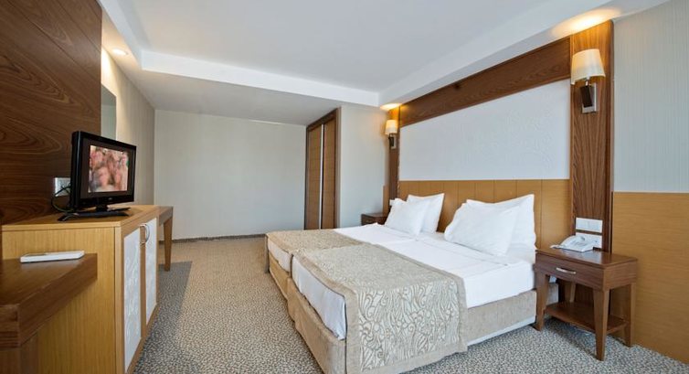 Коротко о главном: если у вас приоритет первая линия, красивая территория, бюджетный вариант, это то что нужно! В остальном, все убого. Покупала в 1001 тур 17 Мая, вылет 22 Мая, на 9 дней цена была 28000 на одного, с топливом(Турецкие авиа, вот им браво!). На фото Пегас (принимающая ТО) рекламируют новый корпус, на это я и рассчитывала, но как оказалась я купила в старом. Обратите внимание на это, в путевках новый корпус указавают NEW. В старом корпусе плюсов нет совсем. Минусы: односпальные кровати, вместо одеяло плед тонкий (по запросу одеяло не принесли, скандалить не по мне), номера маленькие, если поставить дополнительно детскую кровать места не будет даже пройти, "говорящий" унитаз, ФЕН)))) Дамы это нечто))) он советских времен, еще на дырявой гофре, дует в обратную сторону :).