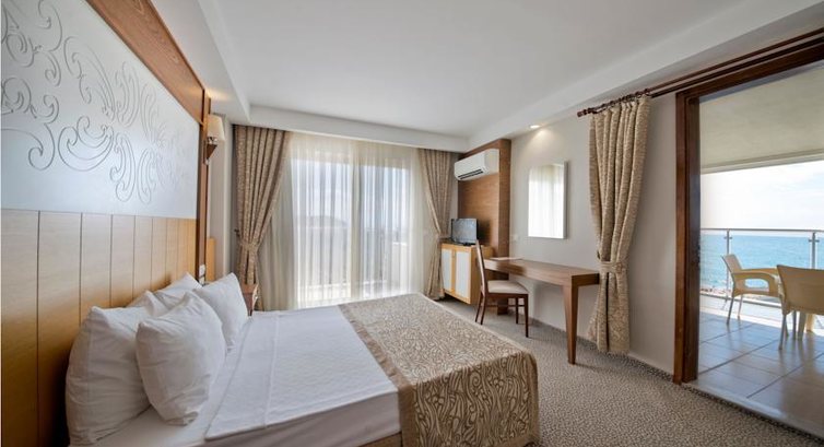 Что понравилось - территория хорошая, первая пляжная линия, новый корпус номер был вполне себе хороший. Заехали вечером после прилета - сразу предложили пойти поесть, пока будут оформлять. Номер украсили как молодоженам (кем мы собсна и являлись)) wi-fi ток в районе ресепшена и заработал только на второй или третий день. его настраивалили прям при нас. Кормят вполне сносно, голодными не были. Алколголь пили белое вино, иногда пиво - но оно там так себе. А вот вино вполне норм. Спас салон - отличный из него не вылазили как и из сауны - Денису привет! Далее - море кайф, теплое и чистое, очень хорошо что есть пирс с лестницей - лучше чем с берега заходить. Дно крупный песок + галька. Канеш это тебе не Тайланд Вьетнам и прочее) Зато море горазд соленее, чем там) Бассейн хороший приятно поплавать. Работали пара горок - несколько раз покатались) Анимация для детей и прочее. Можно взять любой транспорт на прокат - на ресепшене. Мы и так за рулем - и взяли велики - скатались туда-сюда в Аланью, что гораздо круче чем на автобусе - можно где пофотаться по дороге, расстояние туда-сюда 27 км всего. Читали отзывы что отель ужас... Ну хз, ужаса не увидели, да где-то официанты не справляются, где-то алкоголь заканчивается. Но не критично имхо. Все достаточно вежливые - кто их там хамами называл... ну не знаю... Кто хамы так это наши синие граждане которые ужрутся и ведут себя неподобающе. А вот персонал приветлив вполне. Да везде коробочки для чаевых, при том, что чай дать не жалко доллар другой. Ну не даш - не обидятся. В общем все ок. Кто читал ужасные отзывы... Не верьте. Все вполне хорошо. Да и отдыхать нужно именно отдыхать а не грузить себя мелочами. Окончу тем что отель тянет на спокойную четверку канеш, но первая линия все спасает)