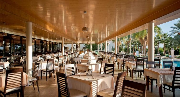 Питание хорошее, разнообразное (мясо, курица, рыба), как и в других "пятерках". Фруктов мало. Были только яблоки и резанные апельсины (правда, очень сладкие и вкусные). Из алкоголя пиво, раки, водка, джин, виски, вино. На пляже, кстати, хорошо кормят, с 11 ч до 16 ч можно поесть. Бары бесплатно работают до 2 ночи. Мороженое с 15 ч.