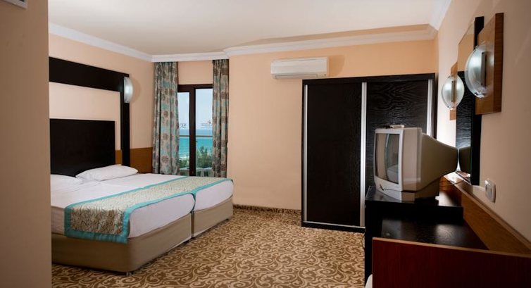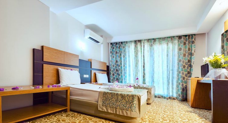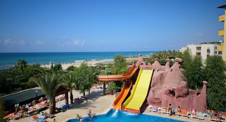 Отдыхала в этом отеле с коллегой по работе в середине сентября. Туроператор Brisco сраборал на "ура". Сам отеля посоветовала директор турфирмы. Сначала купив тур, а затем прочитав отзывы, пребывали в легком шоке. На сайте отзывы не очень и мы расстроились. Прибыли в Анталию, нас рассадили по автобусам, которые порадовали своей новизной и удобством сидений. Добирались до отеля 3 часа, т.к. делали 30-ти минутную остановку. Видимо компания имеет какую-то договоренность с представителями того места, в котором нас высадили на "зеленую остановку". Из-за этой остановки переживали, что не успеем на ужин. Приехали в отель в 20:50. Нам быстро надели браслеты и мы рванули в ресторан. Еда пышет многообразием овощей и зелени. Так что бояться испортить фигуры не стоит. Мясо курицы и баранины, а также рыба в наличии. Пиво вкуснейшее! Горячий шоколад в самом ресторане не очень, а вот на пляже и в баре отменный. Женщина пекла вкуснейшие лепешки, только надо знать время, когда приходить. Лежаки надо занимать перед завтраком, иначе придется лежать на полотенце. Анимация в соседнем отеле супер! 2 водные горки работают по времени. Комары-заразы портили ночной сон, да щель между дверью в номер и коридором давала возможность слышать кто и что делает. На ресепшене попросили, чтобы у нас не убирались. А, кстати, сейфом мы не пользовались, т.к. деньги постоянно носили с собой. А вот у женщины из отеля украли деньги, хотя она их хранила в сейфе!!!! Сейф 2 дол. в день стоит. Ей персонал предложил соседний отель как компенсацию. Чем дело закончилось не знаю, но момент неприятный. Рынок рядом. Торгуйтесь лучше. Сами называйте свою цену и настаивайте на ней. Рядом ТЦ "Метамол" тоже можно прикупить разные штучки. Принимают лиры, доллары, евро. Хамам радом с отелем. Стоимость 20 долларов, если сами придете, 25 от туроператора. Все в восторге. В принципе все понравилось, только от аэропорта далековато. И еще, не забывайте лекарства с собой прихватить, а то вместо сувениров все деньги на них спустите. Желаю приятного отдыха!!!!