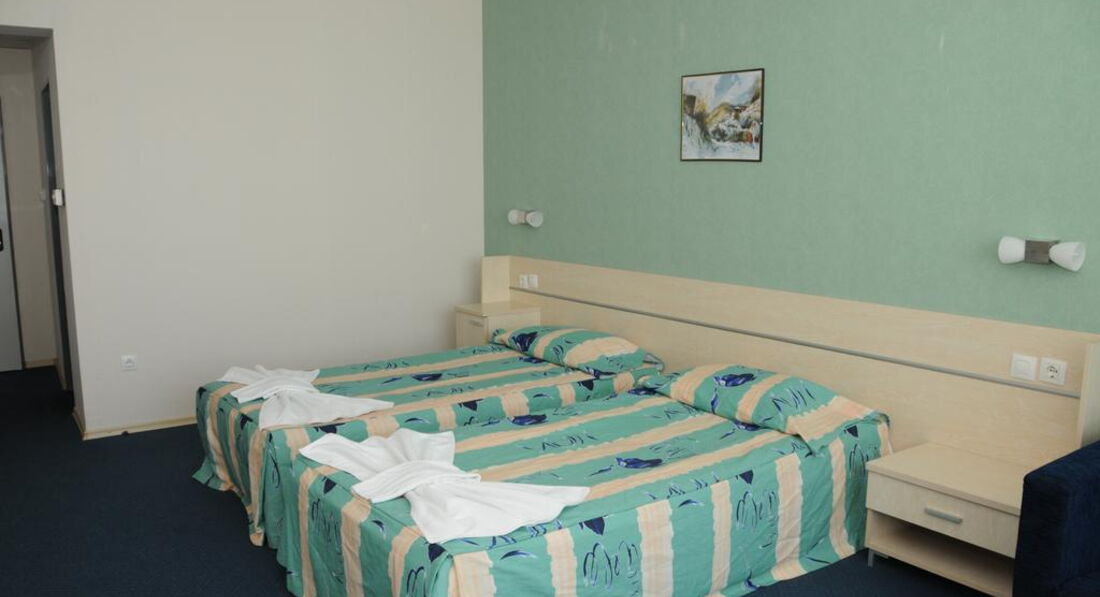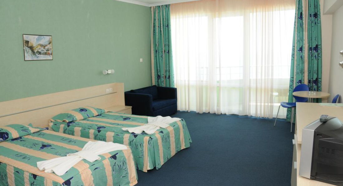 В Болгарии отдыхаем 3 раз.Очень понравилось.Расположение очень близко к морю.Питание разнообразное-мороженое.много мясных блюд.хорошие спиртные напитки.Море чистое.Единственный минус отсуствие анимации и напитки AII до 21.00.Спокойно и тихо.