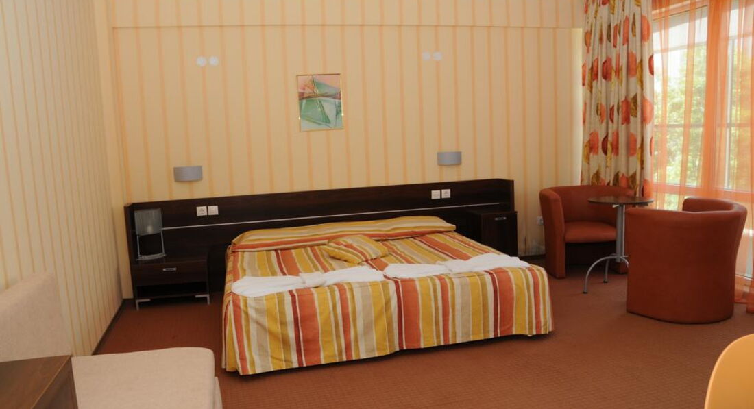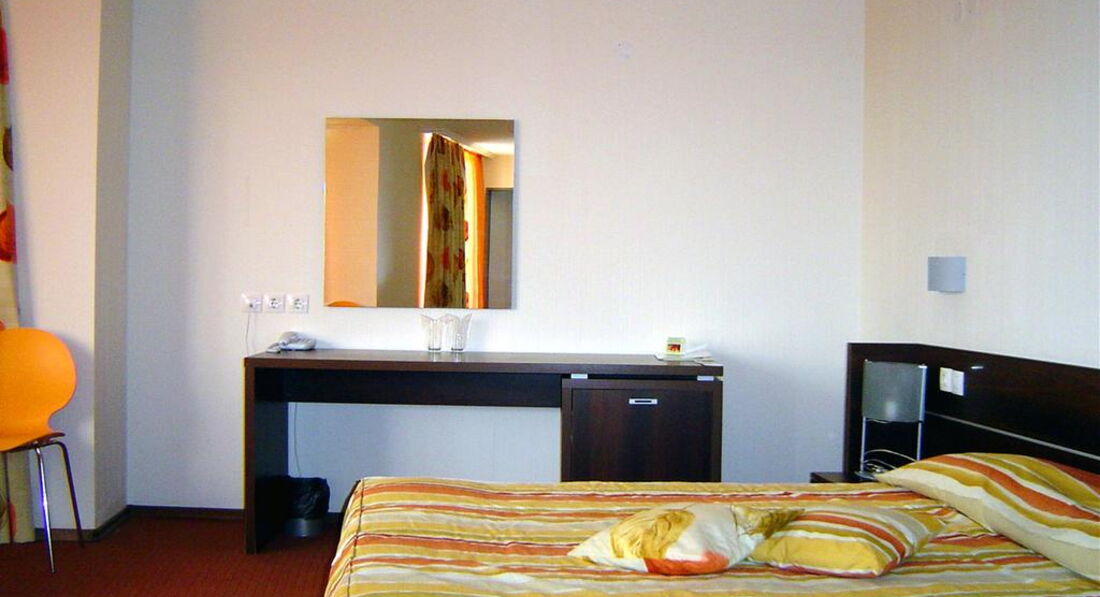 Теперь о сервисе. Вообщем сервис ненавязчивый. На рецепшэн нам всегда улыбались, здоровались,можно взять утюг (бесплатно),попросила пробку в ванную принесли на следующий день. В ресторане полный пофигизм: столики не убирались, кофе-автомат не пополнялся ну и т.д. надо было всегда одернуть за руку. Еда такая же как и везде вполне хватало на завтрак, однообразная (но так везде) В Болгарии не надо брать с питанием (но гостиница работает только на завтраках). Убирали нормально: туалет ванну мыли,полотенца меняли, пылесосили, зеркало не вымыли ни разу за 14 дней хотя я демонстративно оставила на нем разводы(пришлось самой), под кроватями тоже видимо не убирали.