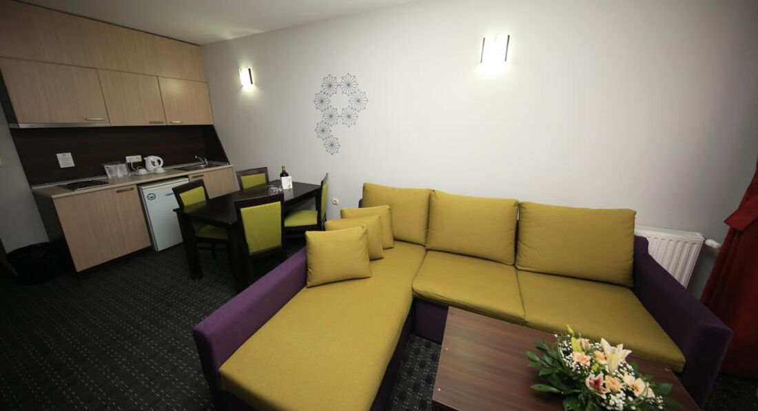 • One Bedroom Suite (спальня з двоспальним ліжком, з суміжними дверима, вітальня з обіднім столом та розкладним диваном, макс. 3+1 чол., 50 м2)