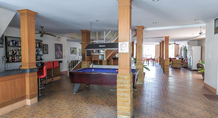 Територія та послуги: • басейн (8 x 4м, з джакузі, 8:00 – 21:00) • ресторан для сніданків (8:00 – 10:00) • бар • Wi-Fi у лобі (безкоштовно) • більярд (платно) • мотопарковка (безкоштовно) • оренда мотобайків Для дітей: • басейн (2 x 1м, 8:00 – 21:00) Живлення: • BB (фіксований набір) Пляж: Парасольки та шезлонги – платно. Пляжні рушники - безкоштовно. Готель розташований за 1,5 км від пляжу Донгтан, за 1,6 км від пляжу Mairuak, за 1,8 км від пляжу Yin Yom, за 1,8 км від пляжу Джомтьєн, за 2 км від пляжу Cosy Beach.