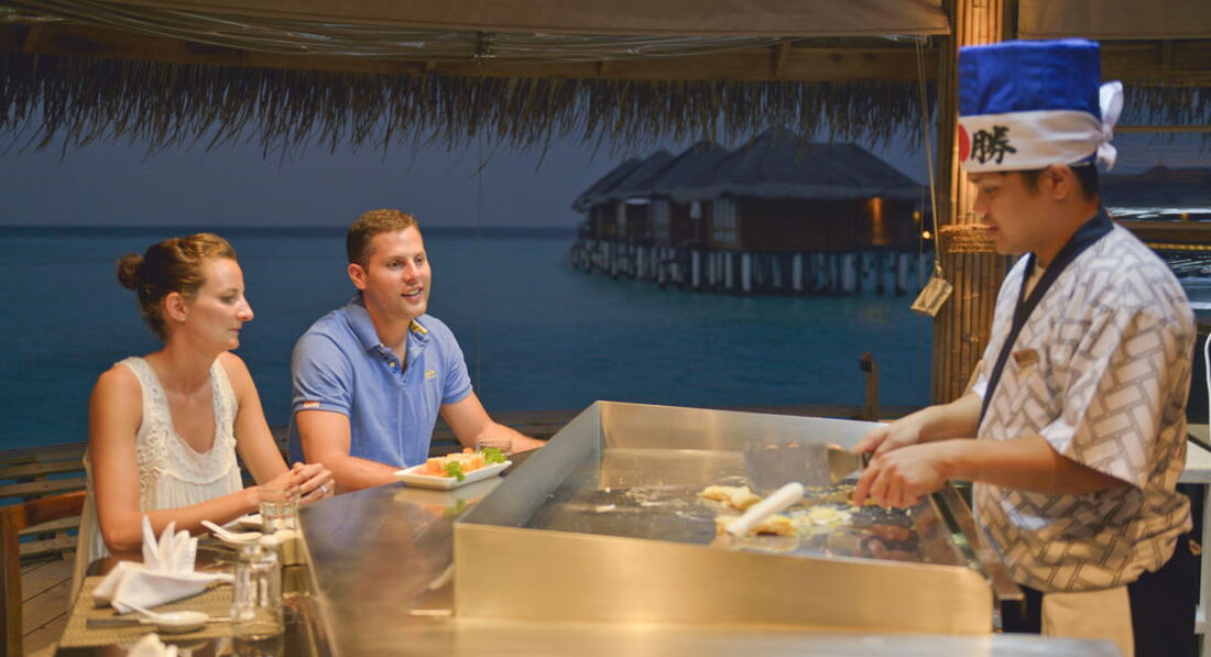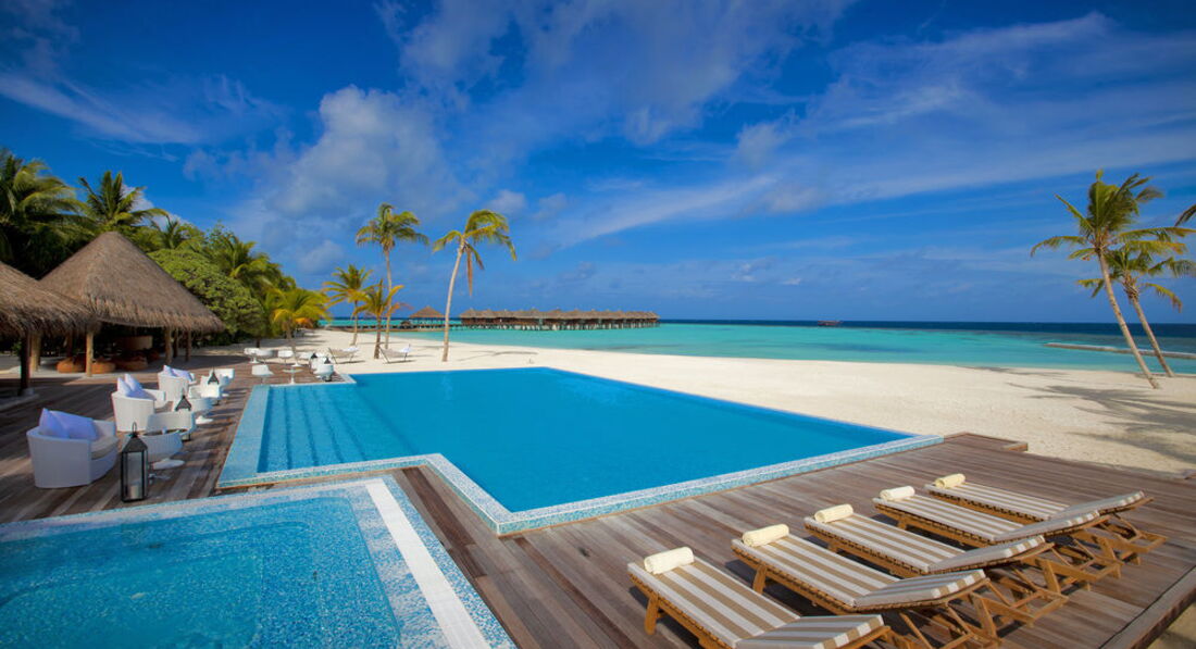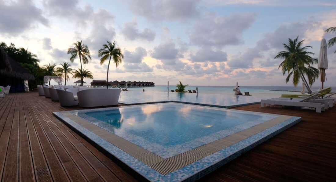 Были в отеле на медовый месяц с конца мая по середину июня. Водная вилла. Оператор Корал. Первый раз на Мальдивах, нам очень понравилось. Очень долго выбирала отель, но за эту цену ничего лучше не нашла. Тут несколько плюсов: 1. Из водной виллы можно было купаться, т.к. нет кораллов около спуска в воду, песок. Кораллы есть чуть подальше. 2. На террасе не видно соседей, есть и лежаки и диван. 3. Стены в виллах не совмещенные, виллы отдельно стоящие. 4. Питание: каждый день кухня какой-либо страны мира, конечно с мальдивскими коррективами, но мальдивская кухня один раз в неделю, это хорошо, т.к. она не реально острая. Питание без деликатесов, но я никогда не была голодная, даже наоборот, объедалась, так, что тяжело было встать потом. Достаточно много блюд на выбор. Разнообразно, вкусно, много мяса, десертов, из фруктов каждый день арбуз, дыня, ананас, периодически плюсом еще другие фрукты. Мы брали питание FB. Для тех, кто хочет взять двух разовое питание - завтраки очень простые - своеобразные салаты, фрукты и выпечка, мало горячих блюд, соки, готовят блюда из яйц по вашему желанию. Завтрак с 7 до 10, ужин только с 19.30. Я бы не смогла продержаться на таком скудном завтраке до вечера. Зато на обеды и ужины гораздо больше блюд. Поэтому на завтраке я была 2-3 раза за 14 дней. Муж вообще спал. есть ресторан а-ля карт, не оч. дорогой горячие блюда по-моему от 20$ (до этого мы отдыхали в отеле Атлантис в Дубаи, так после кусочка мяса за 285$ в ресторане а-ля карт, мне показалось, что тут оч. дешево). 5. Есть бассейн на территории, темнеет рано, купаться в океане уже нельзя, а в басике в самый раз. 6. До отеля лететь на гидросамолете и не долго. это интересно, однако самолет сильно вонючий. 7. Есть почти необитаемый остров- 3 мин на лодке, возят 3 раза в день бесплатно. Там очень круто!! Особенно, если никто больше с вами не едет - остров ваш. Только дяденька уборщик еще с вами, но его не видно.