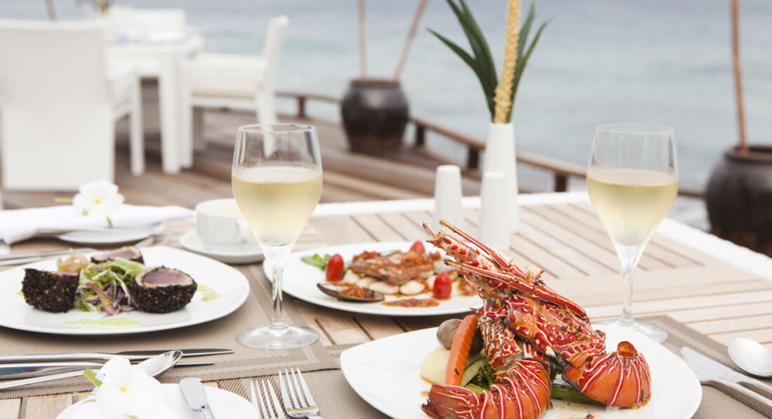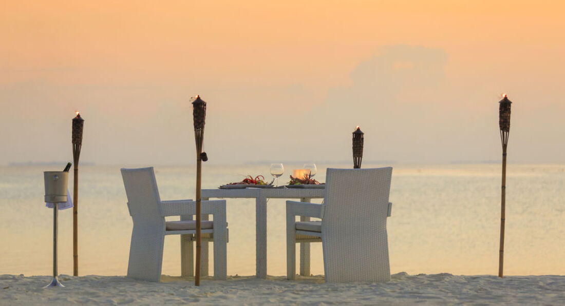 Т.к. у нас был медовый месяц нам подарили бутылку шампанского неплохого и ужин на берегу. Ужин это что-то! Вот такой сюрприз я бы хотела! Не пожалейте денег и закажите за деньги! В отеле это не так дорого как на соседнем диком острове, но там наверно еще круче! Ставят стол на пляже в зарослях или на платформе на возвышении. Красиво украшают стол цветами, вокруг факелы, шум прибоя, не хватило только легкой едва слышной музыки. Брали стейк-оч. вкусно!