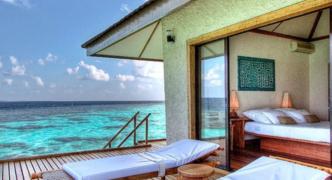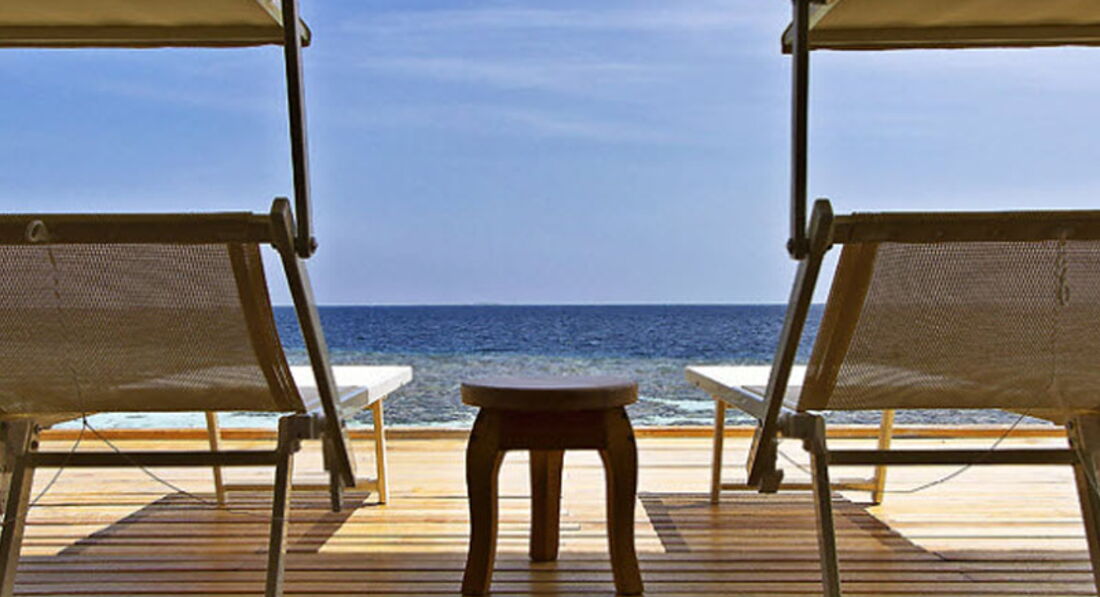 • OVER WATER BUNGALOW вілли на воді, тераса з шезлонгами