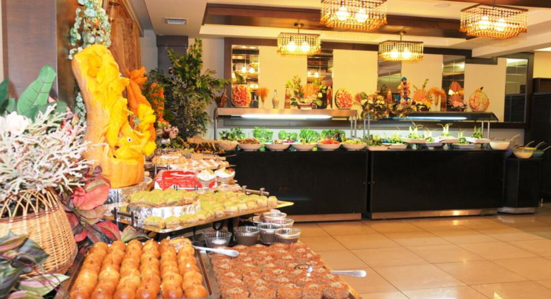 Кормили, как на убой. В начале сезона всегда еды много, я не первый раз замечаю. У отеля свой пляж и, главное, свой ресторан и огромная территория около моря. Как бы, отель разделен надве территории. Вечером пойти в ресторан у моря... очень романтично. Правда, я то с сыном был, но если представить)