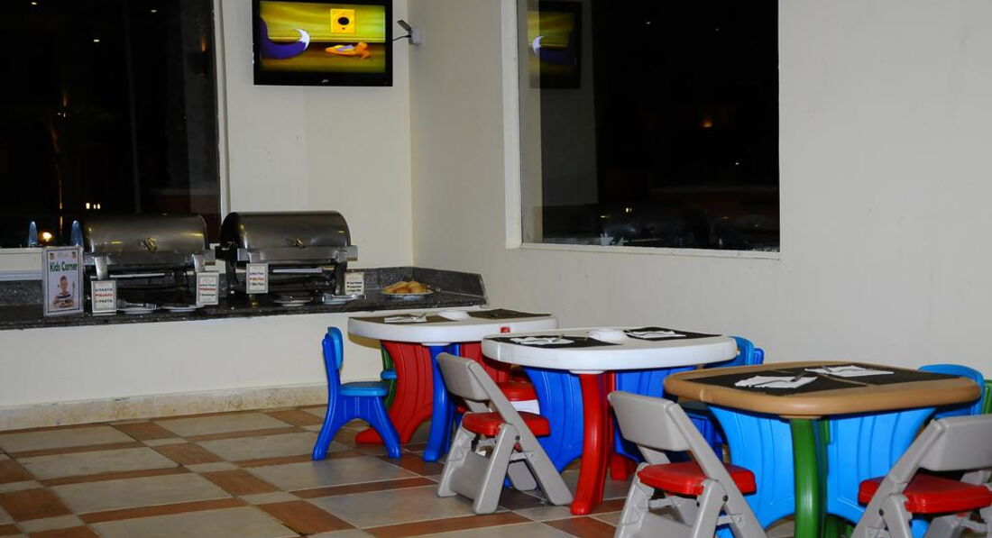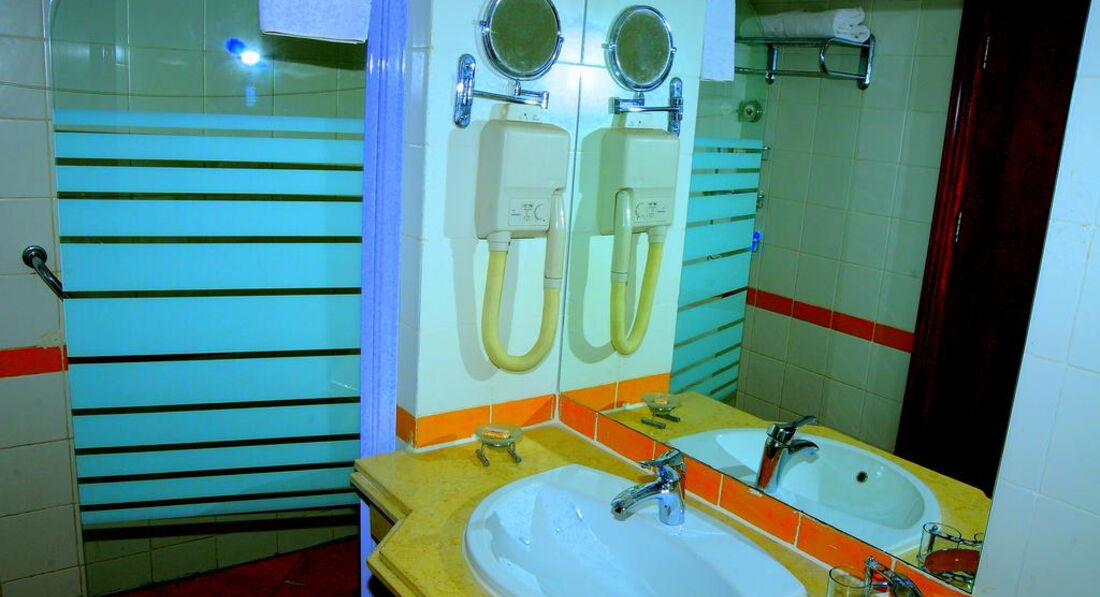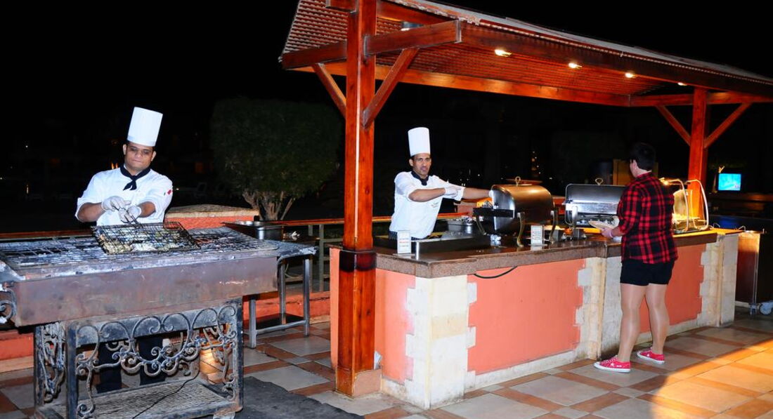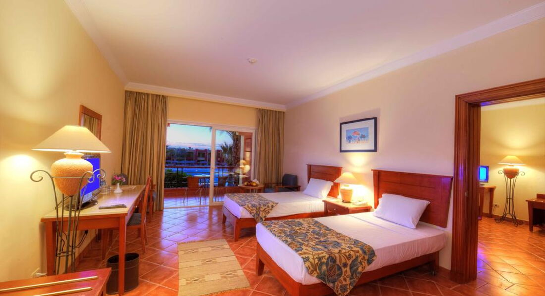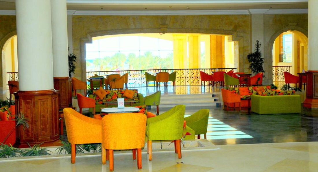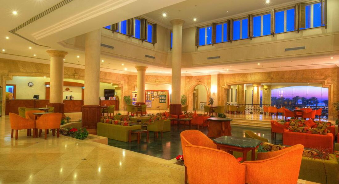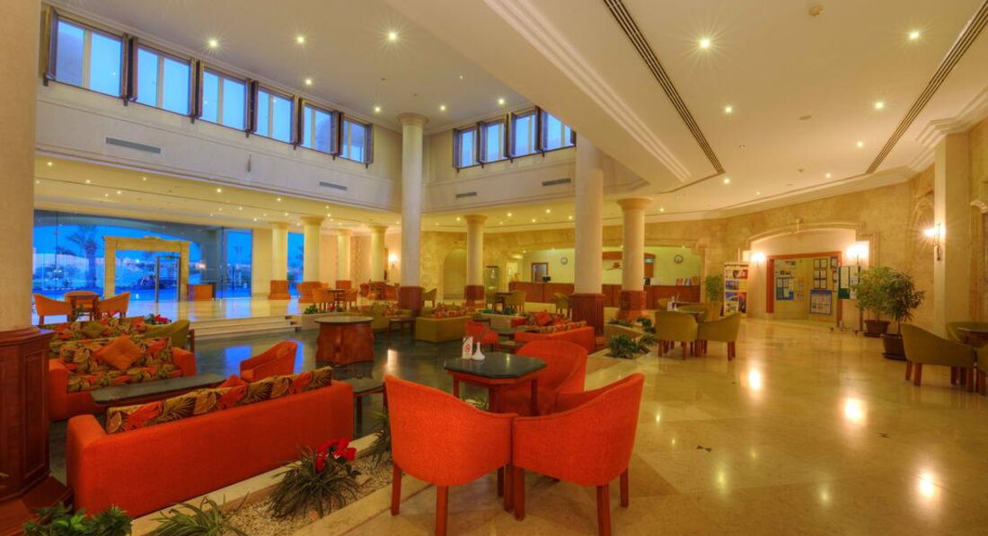 Територія та послуги: • 2 відкриті басейни (з них 1 з підігрівом) • У басейну шезлонги, парасольки • Бари: 5 • Інтернет (послуги готелю) платно • Wi-FI платно • Обмін валюти • Магазини • Лікар платно, 24 години • Пральня платно • Транспорт при готелі платно • Аптека • Паркування Розваги та спорт: • Тренажерний зал платно • Тенісний корт платно • Настільний теніс • Настільний футбол • Дартс • Більярд платно • Волейбольний майданчик на пляжі • Футбольне поле (інвентар платно) • Дайвінг центр платно • Верхова їзда платно • Салон краси платно • Масаж платно • Сауна платно • Джакузі платно • Парна платно • Турецька лазня платно • Амфітеатр • Вечірні шоу • Жива музика • Дискотека 23:00-02:00, платно • Пляжні вечірки щочетверга о 22:30, платно Для дітей: • Дитячий майданчик 3-11 років, 16:00-18:00 • Міні-клуб 11:00-17:00 • 1 відкритий басейн із підігрівом • Міні-дискотека • Дитяче меню у ресторані • Дитяча секція у ресторані Живлення: Система живлення: все увімкнено. Сніданок: з 07:00-10:00, обід: з 12:30-14:30, вечеря: з 18:30-21:00. Шведський стіл. 2 тераси. Система "все включено" діє з 10:00-23:00, включає прохолодні та алкогольні напої місцевого виробництва (пепсі, 7up, мирінда, содова, тонік, концентрований фруктовий сік, мінеральна вода, горілка, джин, ром, віскі, бренді) та гарячі напої (єгипетський еспресо, розчинна кава, чай, американська кава), пиво місцевого виробництва, вино місцевого виробництва (біле, рожеве, червоне). Усі напої подаються в келихах, під час їжі та в барах у лобі, біля басейну та на пляжі. Пляж: Власний піщаний пляж довжиною 250 м. Вхід у море: корали. Обладнаний понтоном завдовжки 700 м. Є кораловий риф. На пляжі шезлонги, парасольки.