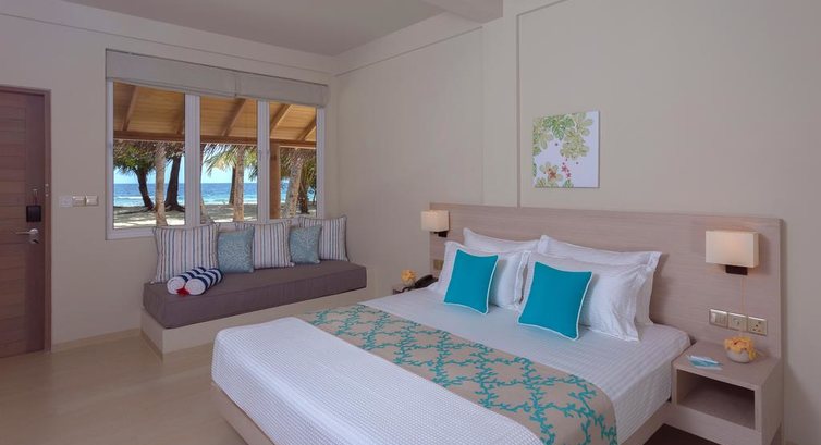 • сейф • набір для приготування чаю/кави • кондиціонер • праска (на запит, безкоштовно) • прибирання номера: щоденно • телефон • тапочки (на запит, безкоштовно) • фен (за запитом на ресепшн, безкоштовно) • міні-бар (платно) • Wi-Fi (безкоштовно) • халат (за запитом, безкоштовно) • прасувальна дошка (за запитом, безкоштовно) • телевізор (у Superior Room, Deluxe Room, Beach Villa; Garden Room буде доступний з 1.11.2016) • ліжко king-size Територія та послуги: • преса (Press Reader: онлайн доступ до 6000 видань – газети та журнали) • спа-центр («Alize»: 3 процедурні кімнати; сауна – буде доступна з листопада 2016 р.) • 2 бари («Bluu» – напої, легкі страви, закуски протягом дня/ «Bar 75» – бар на пляжі) • магазин сувенірів • ресторан («Maaga»: міжнародна кухня; сніданок та вечеря – шведський стіл, обід – шведський стіл або set menu залежно від заповнюваності готелю) • пральня (платно) • Wi-Fi (безкоштовно) • кабінет лікаря (платно) Розваги та спорт: • безмоторні водні види спорту безкоштовно • скутер (джет-скі) • катамаран • більярд • тренажерний зал безкоштовно (24 години) • банан • дартс • волейбол на пляжі • каное (включаючи каное з прозорим дном) • віндсерфінг • вечірнє шоу (жива музика, DJ, тематичні пляжні вечірки, перегляд фільмів просто неба та ін.) • настільний теніс • парасейлінг • дайвінг-центр (PADI) • серфінг • fun tube • SUP-серфінг Для дітей: • дитяче ліжечко (за запитом) • дитячі стільці в ресторані (за запитом) Живлення: • BB • HB • FB • AI Пляж: • піщаний • домашній риф (добрий кораловий риф навколо острова) До оплати приймаються кредитні картки: Master Card, Visa, American Express.