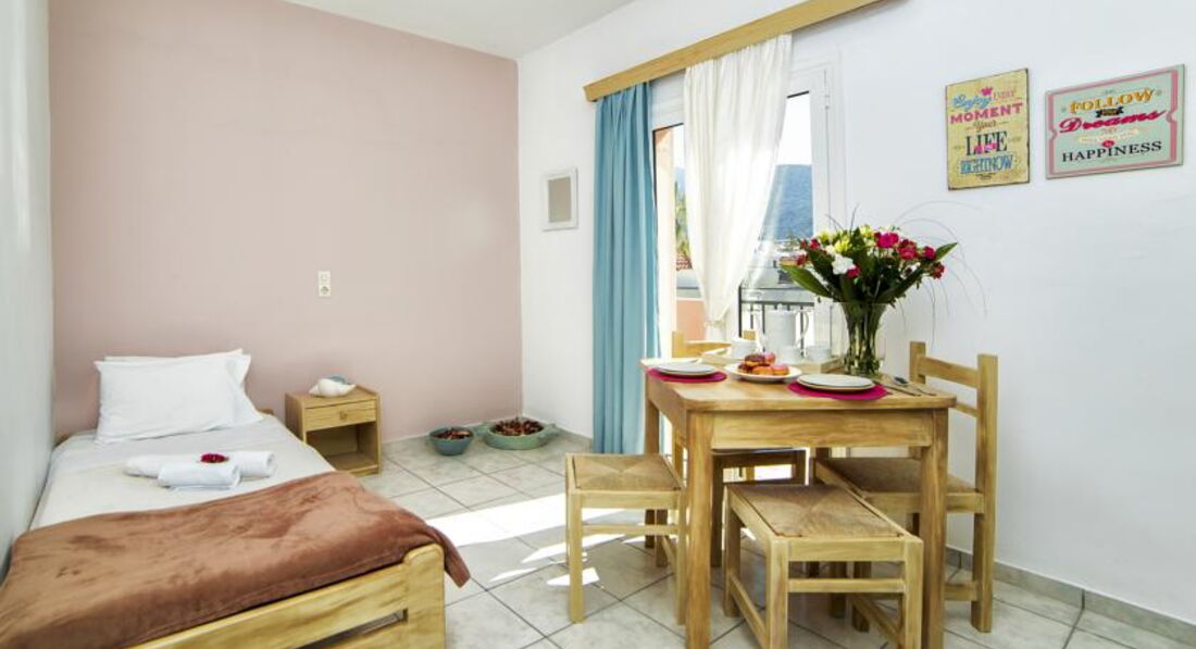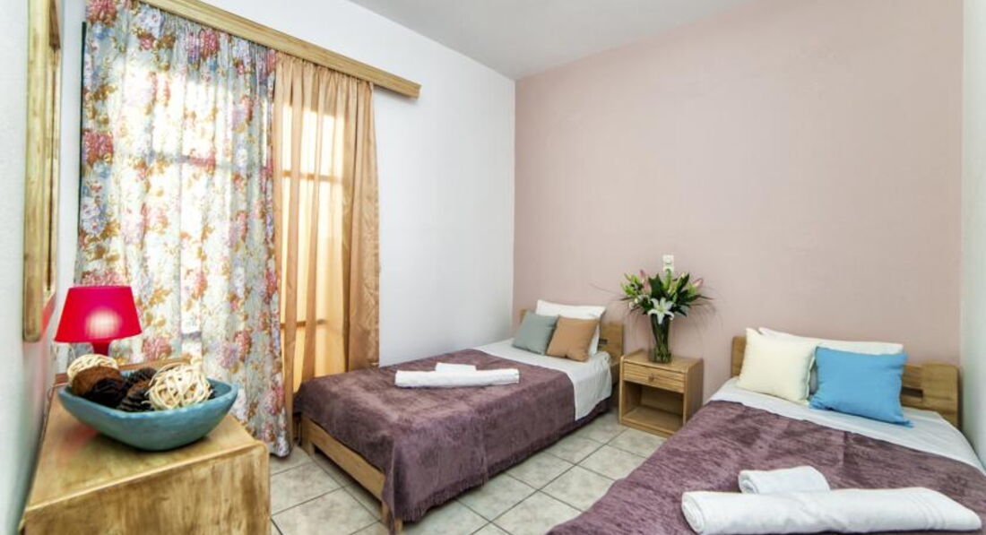 Розташування: розташований за 400 м від піщаного пляжу Малії, поблизу барів і ресторанів, за 7 км від міста Херсоніссос.