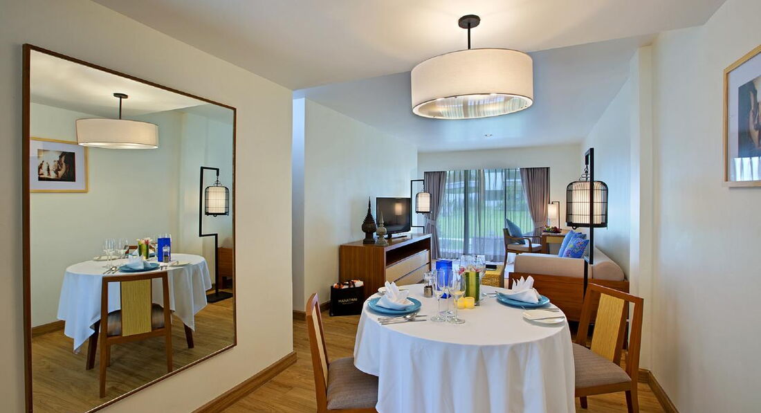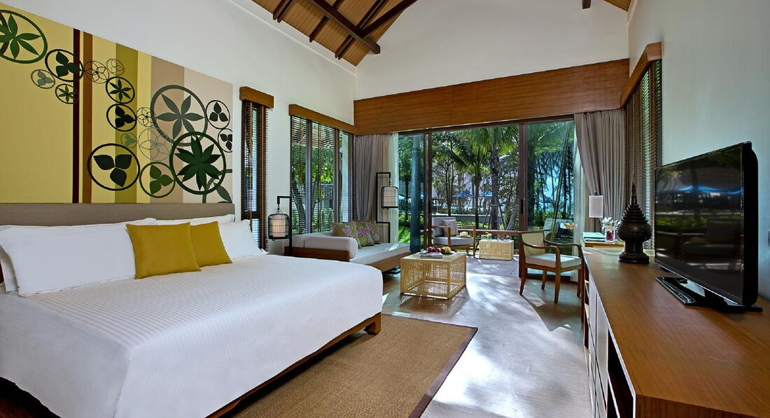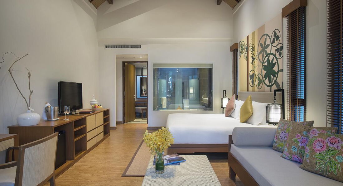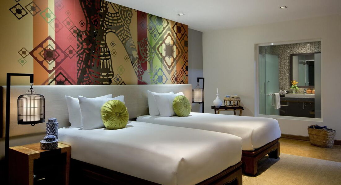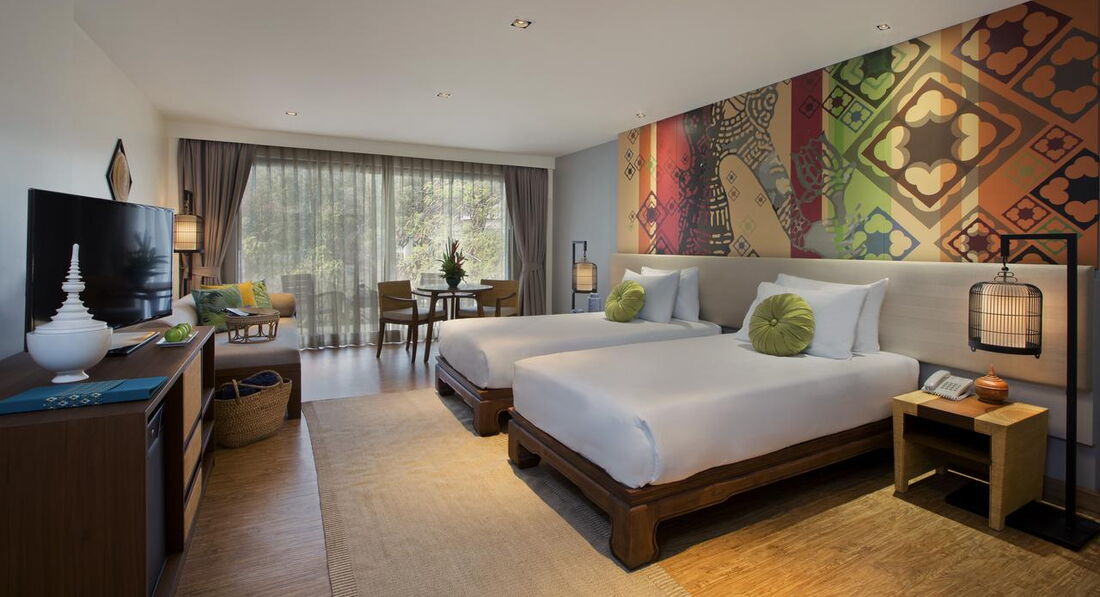 Типи номерів: • 87 deluxe balcony (40 кв.м, 45 dbl/42 twin, макс. 3/2+2 чол, 2-3 поверхи, вид на сад) • 59 deluxe garden (40 кв.м, 48 dbl/11 twin, макс. 3/2+2 чол, 1-й поверх, прямий доступ до саду, вид на сад) • 3 junior suite (56 кв.м, двоспальне ліжко, макс. 3/2+2 чол, спальня, вітальня з обідньою зоною, 1-3 поверхи, вид на сад) • 2 deluxe suite (77 кв.м, двоспальне ліжко, макс. 3/2+2 чол, спальня, вітальня з обідньою зоною, 1-2 поверхи, вид на сад) • 3 garden villa (45 кв.м, двоспальне ліжко, макс.3/2+2 чол, джакузі на терасі, окрема вілла, вид на сад) • 4 pool villa (45 кв.м, двоспальне ліжко, макс. 3/2+2 чол, окрема вілла, басейн 2 x 0.7 м, вид на сад) Є номери, що з'єднуються (deluxe suite + deluxe). Компліменти для іменинників – тістечко, для молодят – прикраса ліжка.У номері: • підлога в спальні – плитка • індивідуальний кондиціонер • ТБ (1 російськомовний канал) • телефон • Wi-Fi (безкоштовно) • сейф • стіл, стілець, софа • міні-бар • 2 пляшки води щодня безкоштовно (junior suite та вище – 4 пляшки) • набір для приготування чаю/кави • душ (garden villa, pool villa – ванна) – з туалетним приладдям • фен • халати, капці • балкон/тераса • щоденне прибирання • щоденна зміна постільної білизни