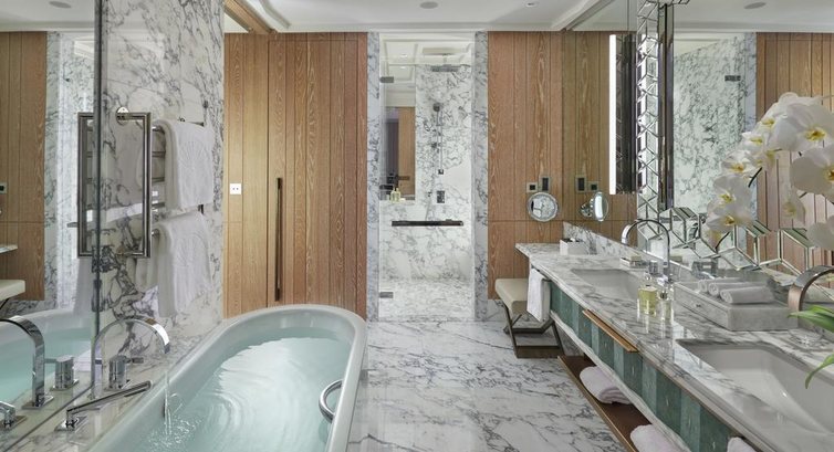 • 4 Two Bedroom Sea View Suite (190 м2, 1-5 поверхи, 2 спальні, вітальня, є міжкімнатні двері, 2 ванні кімнати (в одній з них парна), гостьовий туалет, з видом на море, балкон, ліжка 1 king size (210x200) та 2 double beds (210x135), макс. 5 або 4+2 чол., доступ до клубного лаунжу)