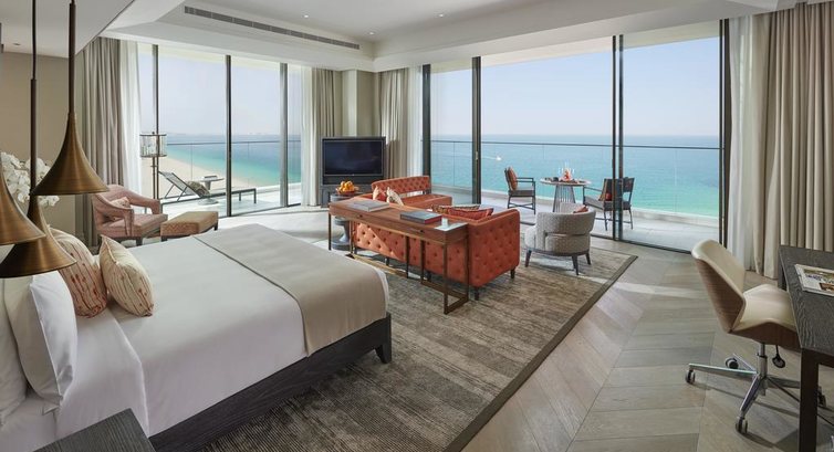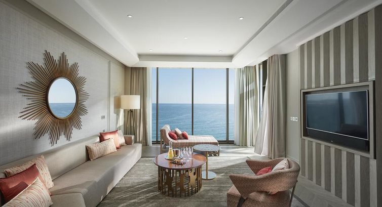 • 34 Junior Sea View Suite (89 м2, 1-6 поверхи, з видом на море, балкон, ліжко king-size, макс. 3 або 2+2 чол., доступ до клубного лаунжу)