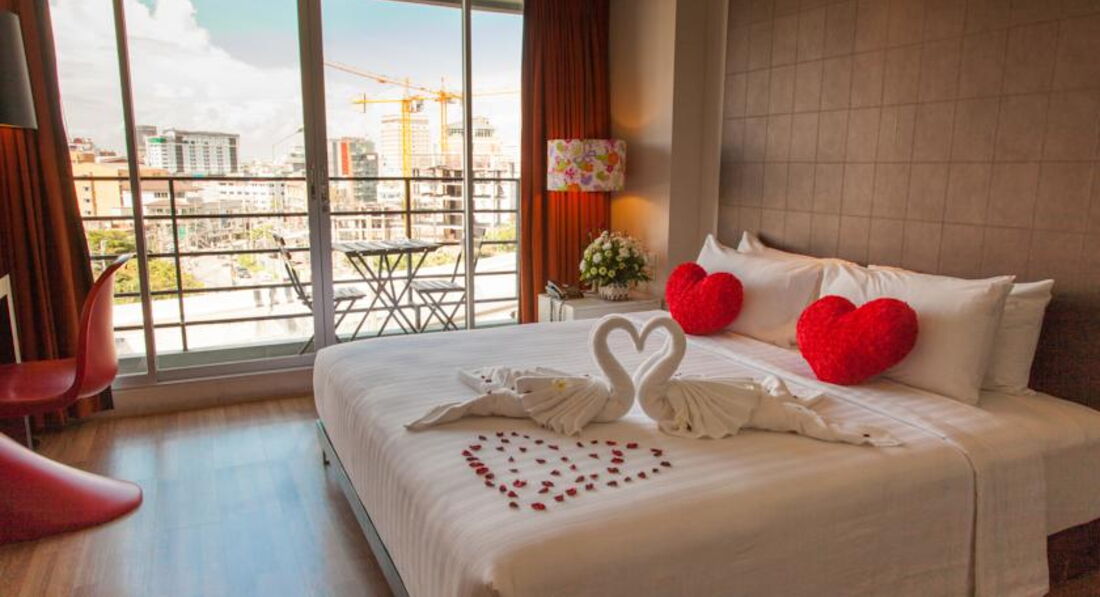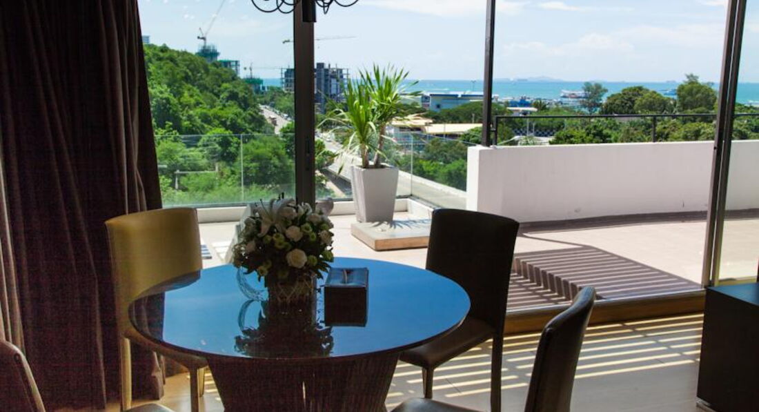 Расположение и номер: Расположен очень удачно: в конце второй улицы, до пирса и Walking street пешком минут 7-10, недалеко от ресторанчиков и магазинов. И в то же время в отеле очень тихо, не слышно всего шума. Минус - с двух сторон отель окружают дороги, по которым носятся машины и байки, и при открытом балконе действительно не поспишь. Но на улице жарко и душно, поэтому открывать балкон лишний раз не хочется абсолютно. У нас был номер ДЕЛЮКС №511 на 5 этаже с видом на гору и часть дороги - вполне нормально для городского отеля. Немного смутила нумерация номеров - справа налево, против часовой стрелки ))) Заходила в ДЖУНИОР СЬЮТ - спальня по размерам такая же как и в нашем номере, а гостинная комната с диваном даже поменьше. Идеально для тех, кто с детьми, а для двоих - вторая комната не нужна. Всего в отеле 6 этажей, с 2 по 5 этажи номера делюкс и джуниор сьют, на 6 этаже находится пентхаус.