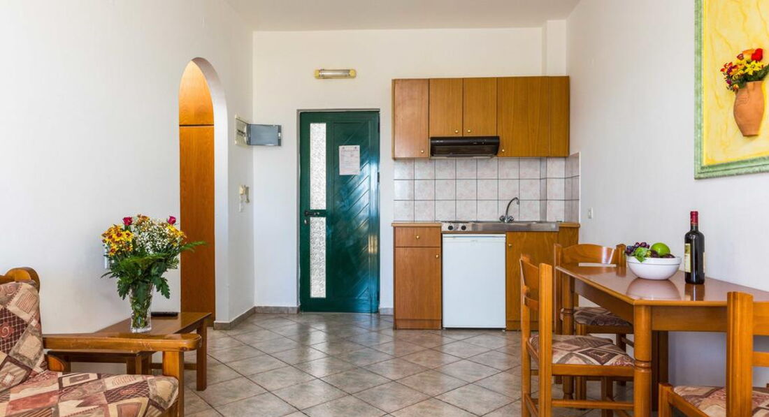 • Apartment 1 bedroom Ground Floor (розташовані на першому поверсі, спальня з окремою вітальнею, осн. ліжко – двоспальне ліжко, дод. – односпальне ліжко, кухонний куточок, макс. 4 чол., 34 м2)