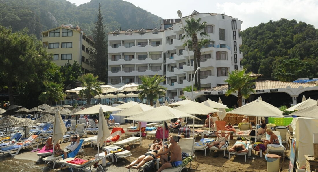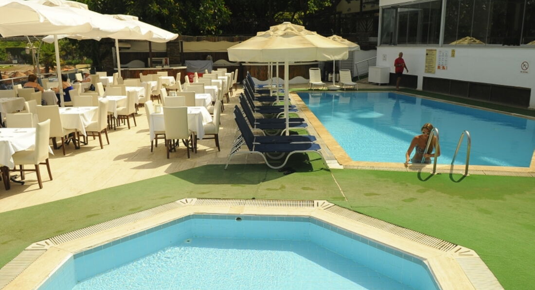 Мы с женой отдыхали здесь в мае. Такой-себе простой и недорогой отель, тем кто не любит искать недостатки- сюда. Тур оператор TPG, быстро и качественно подобрали тур и оперативно его организовали. Трансфер до отеля прошел без проблем. Добрались быстро, так как приехали после 14:00, нас сразу и заселили. Номер оказался небольшой, чистый, с неплохим ремонтом, добротной меблью и рабочей техникой. Мини-бар, ТВ, сейф, фен. Вместительный шкаф, балкончик. На рецепции нас сразу предупредили, что кондиционер работает по времени, но всё продумано, так что в номере было комфортно. Уборку делали каждый день, достаточно качественно. Полотенца меняли, если оставляли их в душевой, как пишут в отзывах, или на полу. А постель - на третий день нам сменили. Обслуживающий персонал очень вежлив, приятные люди, честные, из номера не пропала ни одна мелочь, а чаевые - приходилось лично в руки давать - -так не брали. Питание нормальное для трех звезд, лично нам понравилось. Кому-то покажется, что готовят однообразно, но зато все овощи свежие, много гарниров, каждый день курица, рыба, разнообразные фрукты, сладости, выпечка. Обслуживание на высоком уровне. Посуда чистая, убирают очень быстро. На территории отеля есть бассейны(взрослый и детский). Пляж - небольшой. Лежаков хватало. Вход в воду пологий, но с ракушкой и камушками. Хотя, вода очень тёплая и купались с огромным удовольствием. Загорели замечательно! Лежаки на пляже бесплатные, а вот пляжных полотенец нет, нужно брать свои или купить. Анимации в отеле нет. По вечерам можно пройтись прогуляться в центр Мармариса, вдоль пляжа. Несколько раз посещали аквапарк, а также брали напрокат и велосипеды, и машину, так как мы любим поездить-посмотреть. Я доволен, что так экономно и классно отдохнул