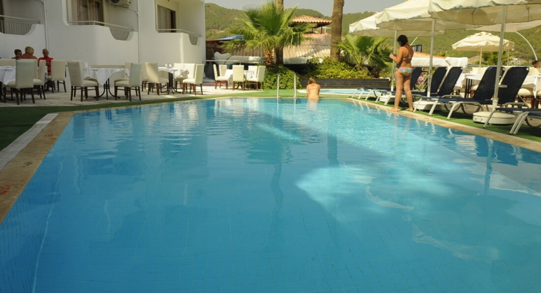 Маленький уютный отельчик находится в самом конце побережья Ичмелера. К плюсам отеля: пляж с хороший заход в море, обслуживание замечательное, питание хорошее. Минусы - это запах от козьей фермы, которая находится напротив отеля у подножье горы и грязный пляж. В целом мыс мужем замечательно отдохнули. Советуем съездить на поющие фонтаны в Мармарис 21-00 начало, погулять по Street Bar и полазить по горам, (слева от нашего отеля есть заброшенный отель) где открывается замечательный вид. Удачи вам в отдыхе.