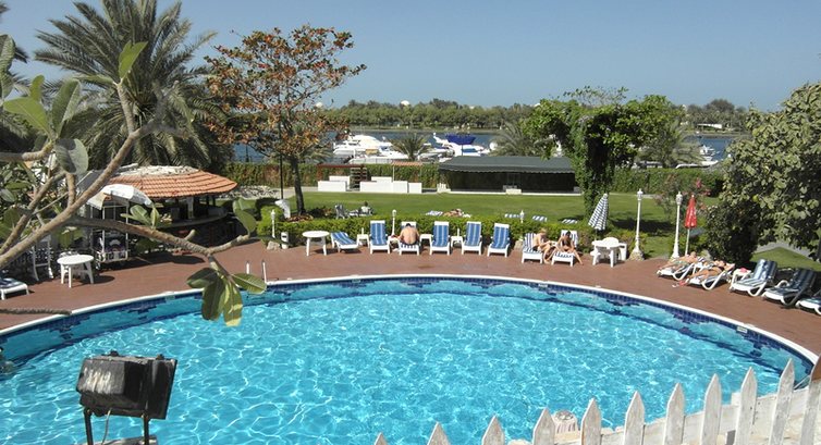 довольно скромный отель находится на берегу некупабедбной лагуны Халид, совсем радом с отелем Holiday International 4*. До пляжа авто. Территория довольно большая и зеленая, отель состоит из вилл, причем почти у каждой есть свое парковочное место для авто, так что удобно взять машину на прокат и парковать у своей виллы. В целом отель старый и практически все уже ветхое и требует ремонта. Неплохое питание, при полупансионе можно выбирать обед или ужин.