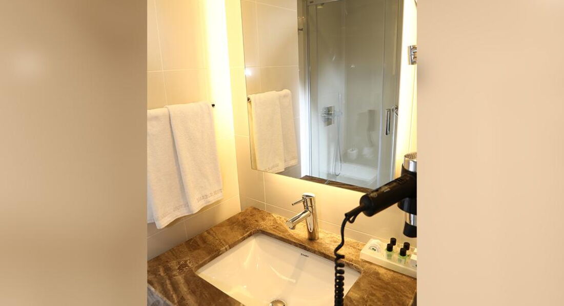 Восьмиповерховий MarbleHotel відрізняється сучасною архітектурою та скляним фасадом і розташований у центрі Стамбула, за кілометр від протоки Босфор. Готель пропонує комфортабельні номери та високоякісне обслуговування. Готель розташований в центральному районі Стамбула, за 20 км від аеропорту Ataturk.