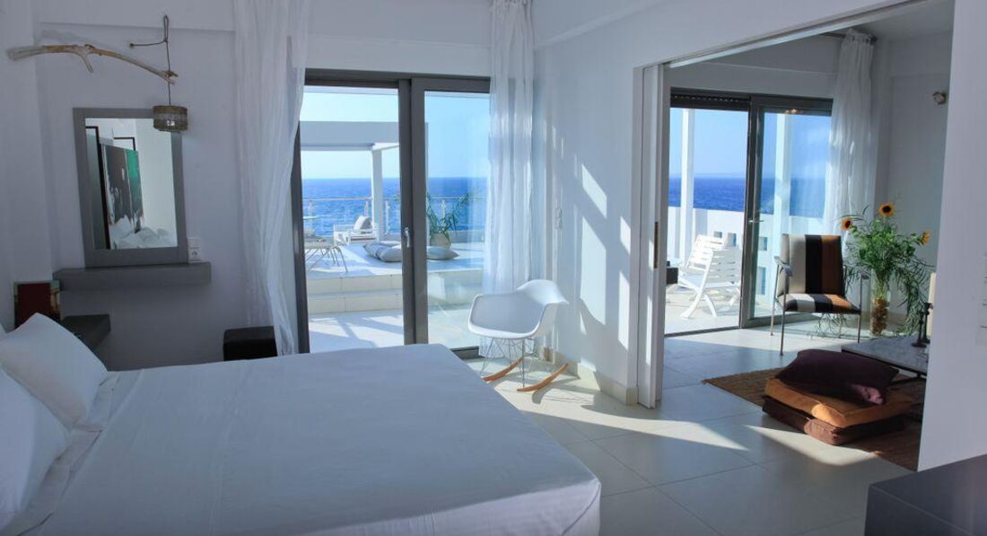 • suite panoramic sea view (з панорамним видом на море, осн. ліжко - двоспальне розміру king size, дод. - 2 софи, спальня відокремлена від вітальні, макс. 4 чол., 55 м2)