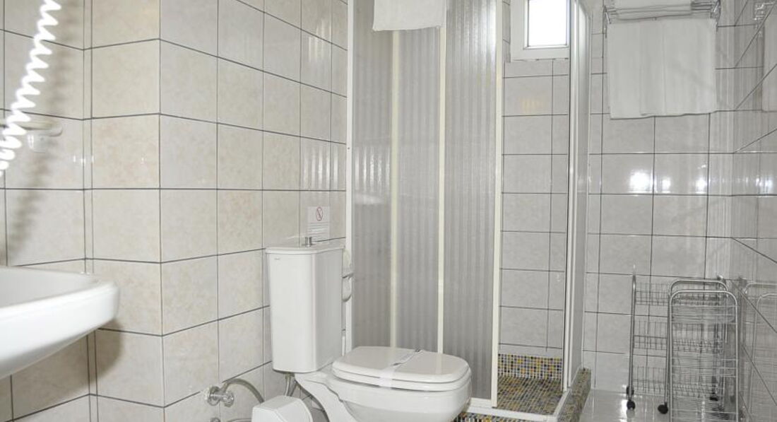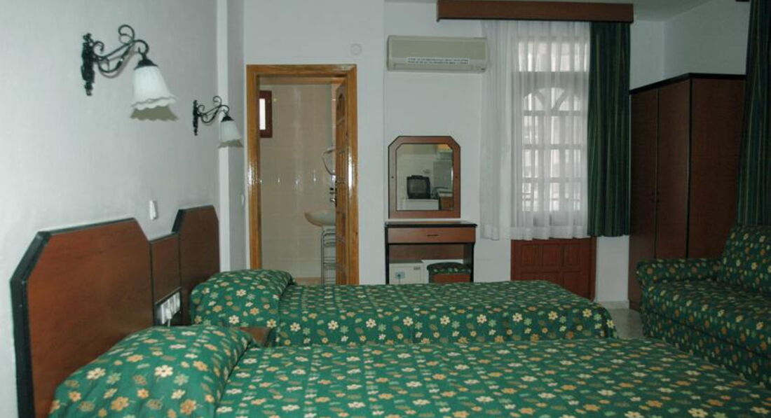 3) В номере на 2 комнаты один кондиционер, который работал еле еле, во второй комнате приходилось открывать дверь на террасу, соответсвенно был слышен шум с улицы. За пульт от кондея осталяешь залог, который возвращают при выезде (20 лир). Номер обставлен очень скромно, даже аскетично. Странные одеяла, вроде вафельных полотенец, только большие. В номер мы приходили только спать, так что его убранство нас не сильно волновало. Сантехника в рабочем состоянии, горячая вода, фен.