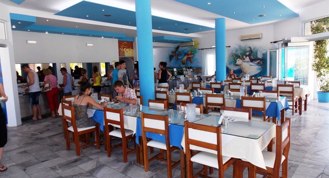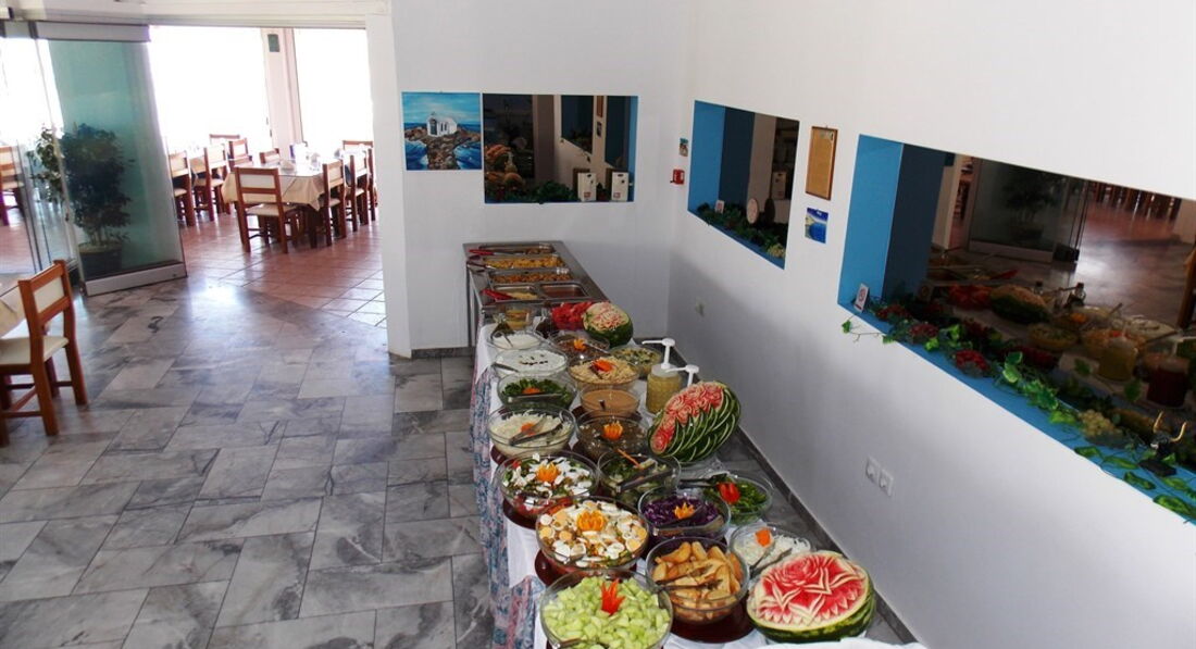 • ресторан Mari Beach, шведський стіл, 07.00 – 22.00, тип кухні: Грецька та Середземноморська, кондиціювання, дрес-код, для некурців