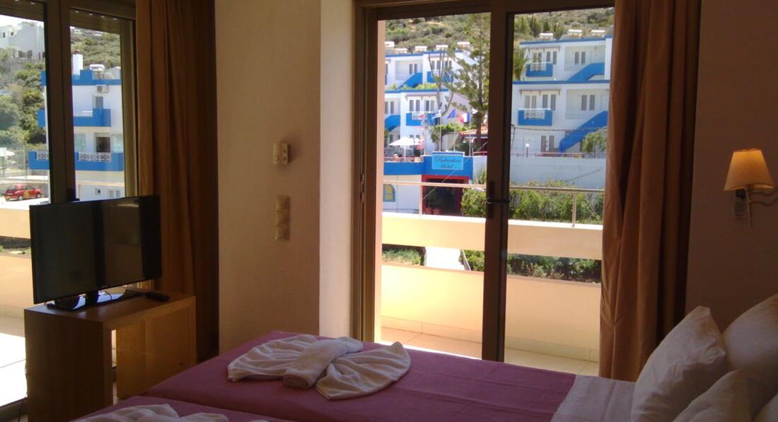 Типи номерів: • One-bedroom apartment (40/45/65 кв.м-макс.розм. 2/3/4 чол) апартаменти складаються зі спальні та вітальні з обладнаним кухонним куточком, електричною плитою та холодильником, балкон/тераса. • Superior Apartment (75 кв.м.) макс. розм. 5 чол, складаються зі спальні та вітальні, обладнаний кухонний куточок, праска і прасувальна дошка, балкон/тераса.У номері: • ванна • банне приладдя та тапочки • фен (за запитом у Superior) • супутникове ТБ (є російські канали) • міні холодильник • чайник та кавоварка • кухонний куточок із плитою • кондиціонер (платно) • праска та прасувальна дошка (на запит у Superior)