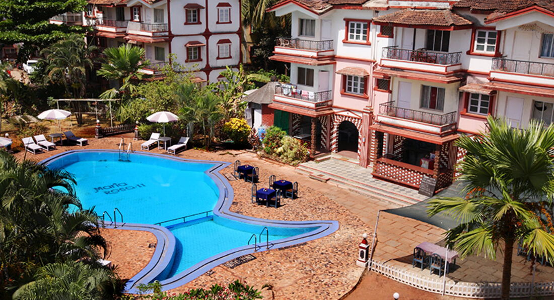 Невеликий готель Maria Rosa Resort затишно розташувався в оточенні рисових полів та пагорбів при в'їзді до села Калангут. Сучасні будинки розташовані навколо басейну, виконаного у формі риби. У басейну розставлені столики, де завжди можна посидіти в компанії друзів і насолодитися освіжаючими напоями та персональним обслуговуванням. Готель Maria Rosa Resort - це місце для приємного відпочинку на Гоа.