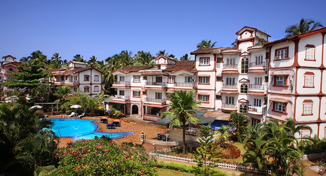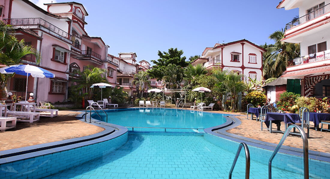 Отдыхали в этом отеле с 14 по 22 марта 2012 года. Расположен при въезде в Калангут, рядом с церковью святого Алекса. Отель неплохой, разделен на несколько корпусов, фасад здания в некоторых местах покрылся плесенью, от этого экстерьер выглядел немного удручающе. На территории есть небольшой бассейн в виде рыбки, вокруг шезлонги и много зеленых тропических растений. Номера большие, при вселении мы бесплатно поменяли номер,который нам не понравился, т.к балконы выходили на стены соседнего корпуса…,в итоге получили отличный большой номер на втором этаже. Т.к нас было трое(DBL+extra bed)-а в номере было 2 кровати, то сразу после заселения принесли доп.кровать, которая представляет из себя что-то типа раскладушки с устойчивыми ножками и очень мягким матрацем, в итоге получилось 3 равноценных спальных места, еще в номере диван ,2 кресла ,холодильник, отдельная мини-кухня без плиты, 2 балкона, один из которых выходил на бассейн, другой с видом на ресепшн. Постельное белье и полотенца землистого цвета без всякого оттенка белого)))Горячая вода в душе была только раза 2,которая за короткое время становилась холодной)))Живности в номере, кроме пары муравьишек и пары маленьких ящерок, мы не наблюдали, комаров тоже не было. Но мы особенно не заморачивались на эту тему, т.к в гостинице только ночевали…Завтраки представляют из себя омлет с овощами, стакан мангового сока, тосты с джемом, чай или кофе, иногда нам предлагали индийский завтрак, состоящий из лепешек, соуса из картофеля и специй +чай или кофе и тосты. Готовили вкусно. Персонал приветливый, все улыбаются и быстро запоминают номер комнаты и предпочтения гостей. Рядом с отелем расположены шумные улочки с разнообразными мини-маркетами, сувениркой, одеждой и т.д