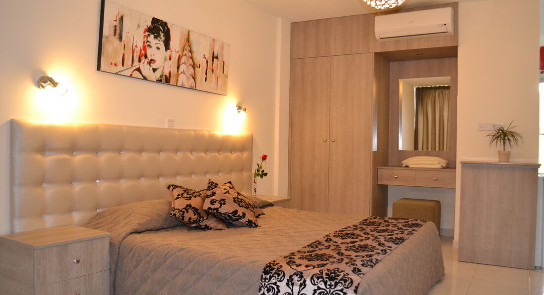 Аппартаменты сносные, жить можно. есть все необходимое (денег за них уплаченных они не стоят). Но первое впечатление плохое, всем хотелось домой. Самый главный недостаток по приезду ,что кондиционер был платный 8 евро в день. Об этом нам никто неудосужился сказать ни оператор , ни тур-агент.Был сломан деш и один стул(спинка). Душ нам сделали сразу после жалобы, а вот стул так и не поменяли. Убирали не каждый день. Один раз дали уборщице чаевые, так она "вылизала". Но нам это не помешало хорошо отдохнуть. До пляжа идти минут 10. Рядом есть небольшой продуктовый магазин, где есть все ,чтобы приготовить себе обед. Так как написано в описании рядом на набережной многокае и ресторанов на всякий вкус (даже макдональдз). Нам понравилось в "Шекспире" хорошо готовят и обслуживают. Пляжи все муницыпальные с серым(непривлекательным) характерным для КИпра песком, так что можно выбирать. По пыту лучше пляж при отеле, т.к. так убирают. Шезлонги стоили 1 евро.