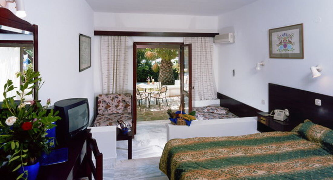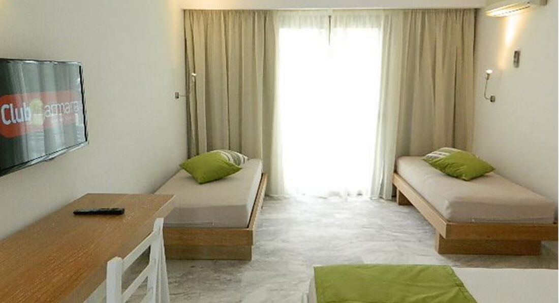 Типи номерів: Bungalow SV/PV/ (вид на море або на басейн, осн. ліжко – 2 односпальні або двоспальне, дод. – софа, макс. 2+2 чол., 28 м2), Standard room SV/LV (вид на море, або сад, осн. ліжко – 2 односпальні або двоспальне, дод. – софа, макс. 3 чол., 22 м2), Family room open plan GV (вид на сад, однокімнатний номер, осн. ліжко – двоспальне ліжко або 2 односпальні, дод. – двоярусне, макс. 2+2, 28 м2)У номері: сейф: у номері, безкоштовно (механічний/електронний) зміна білизни: 3 рази на тиждень кондиціонер: центральний (у головній будівлі); індивідуальний (у бунгало) – безкоштовно) зміна рушників: 3 рази на тиждень прибирання номера: 3 рази на тиждень підлога: керамічна плитка балкон або тераса фен: є ТБ: супутникове Інтернет: Wi-Fi, безкоштовно ванна або душ міні холодильник